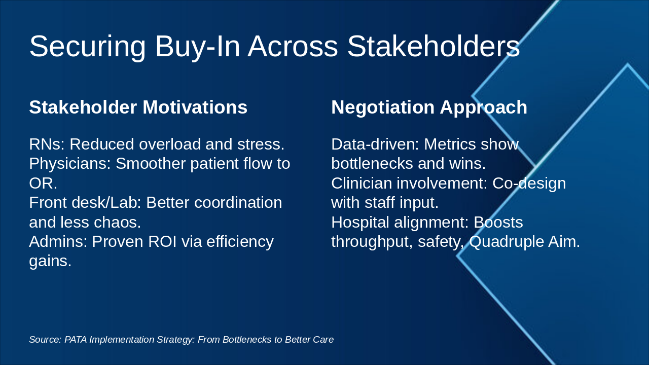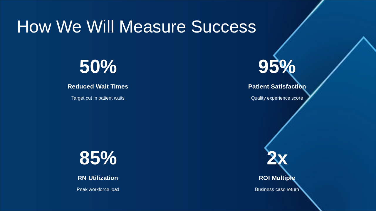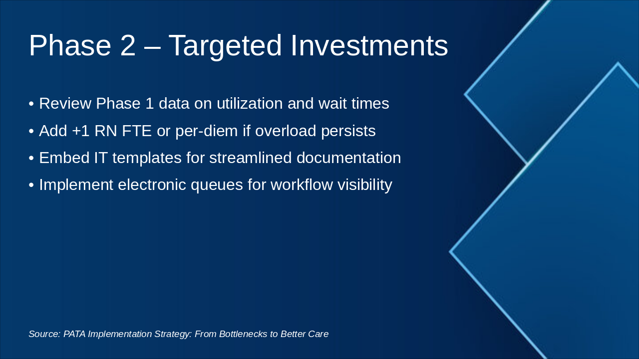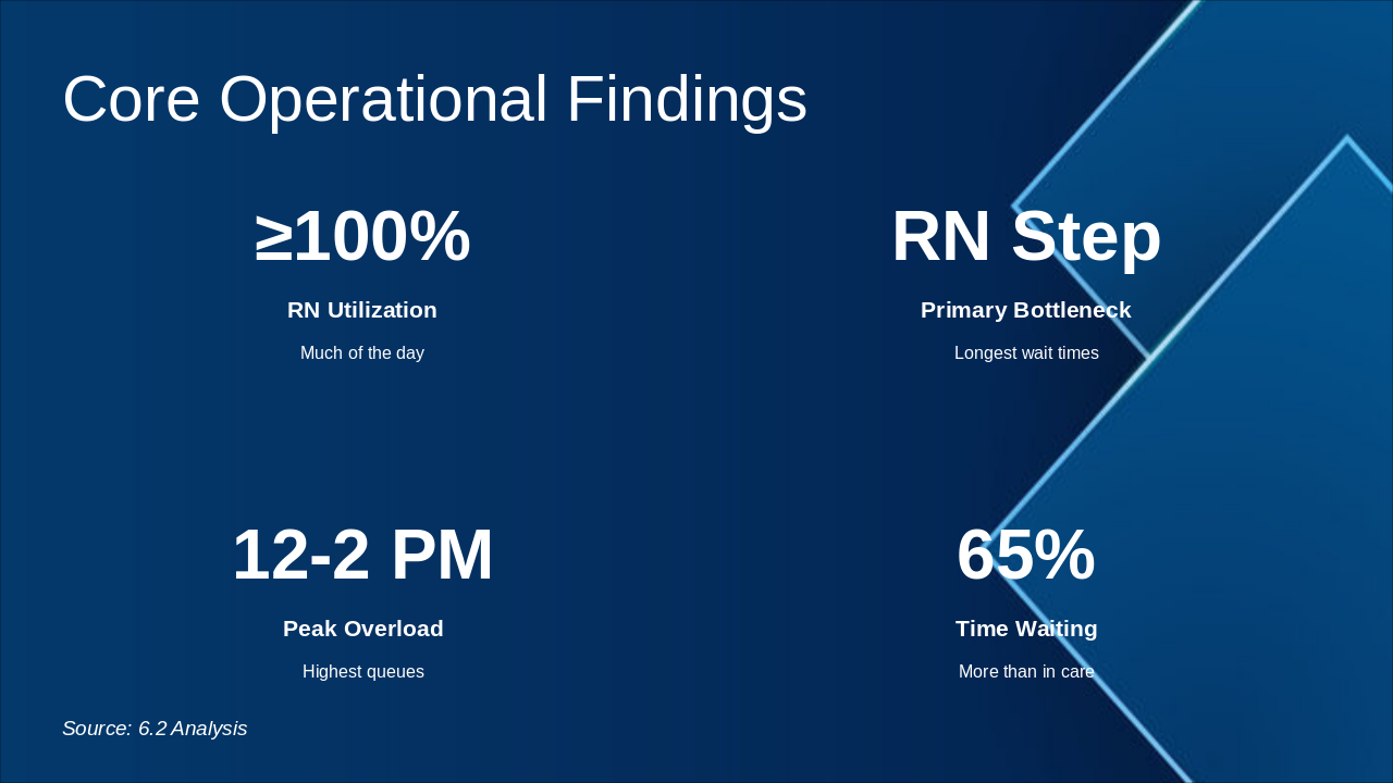 Proposal 2 (More staff/rooms): Pro: Fixes RN queues, strongest impact; Con: Requires FTEs, space, budget barriers. | Proposal 3 (Process): Pro: No new FTEs, targets waste; Con: Needs behavior change.