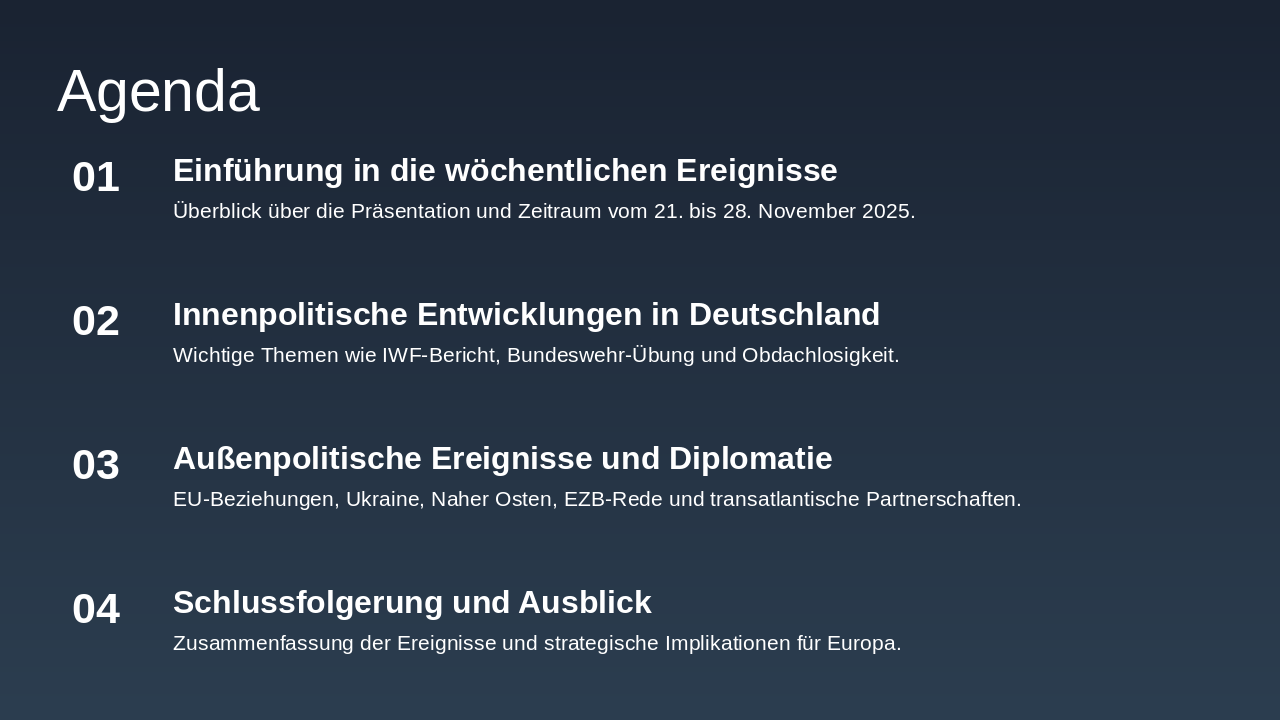 Slide 1 - Wöchentliche Politische Ereignisse 21.–28. November 2025
