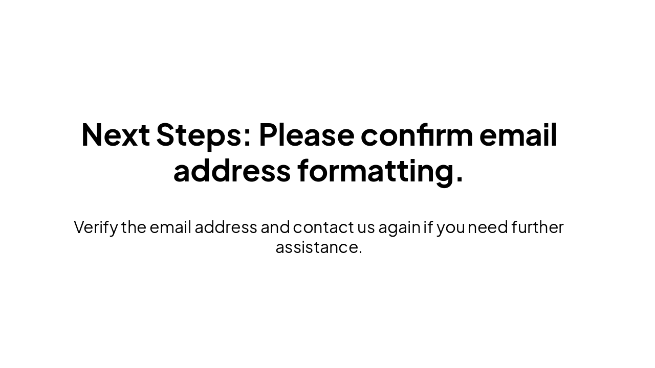 This presentation responds to an inquiry about the email 'asjk@56207gmli.ocm', flags potential invalidity due to '.ocm' domain (likely '.com' typo), advises verification of spelling and details, and outlines next steps for confirmation.