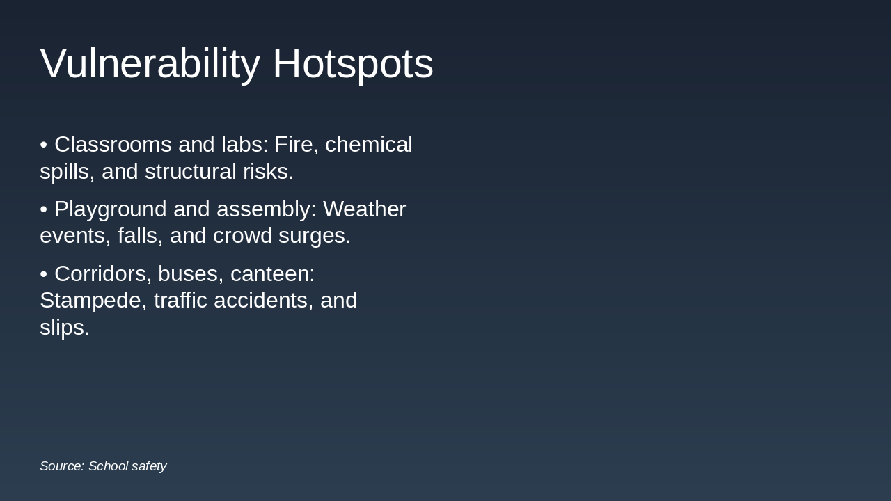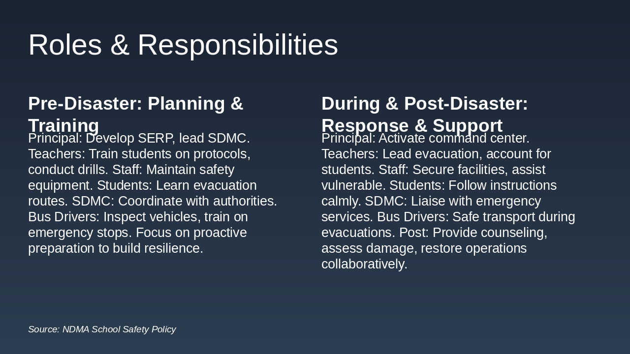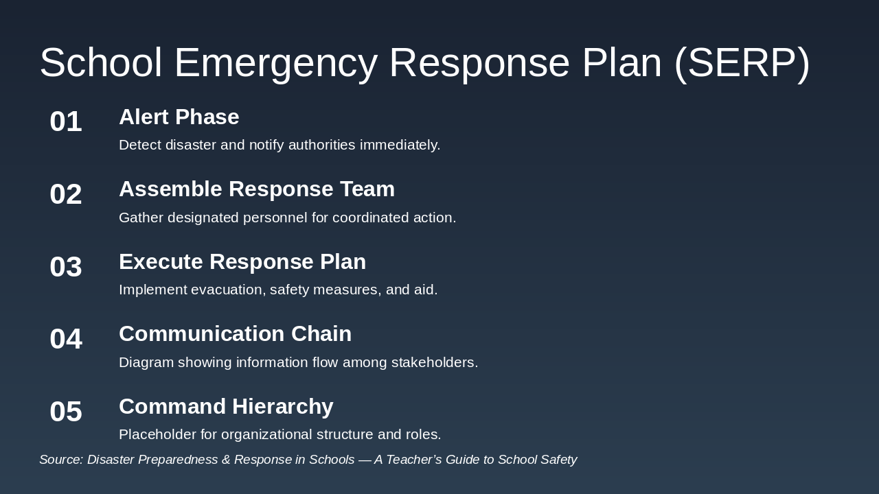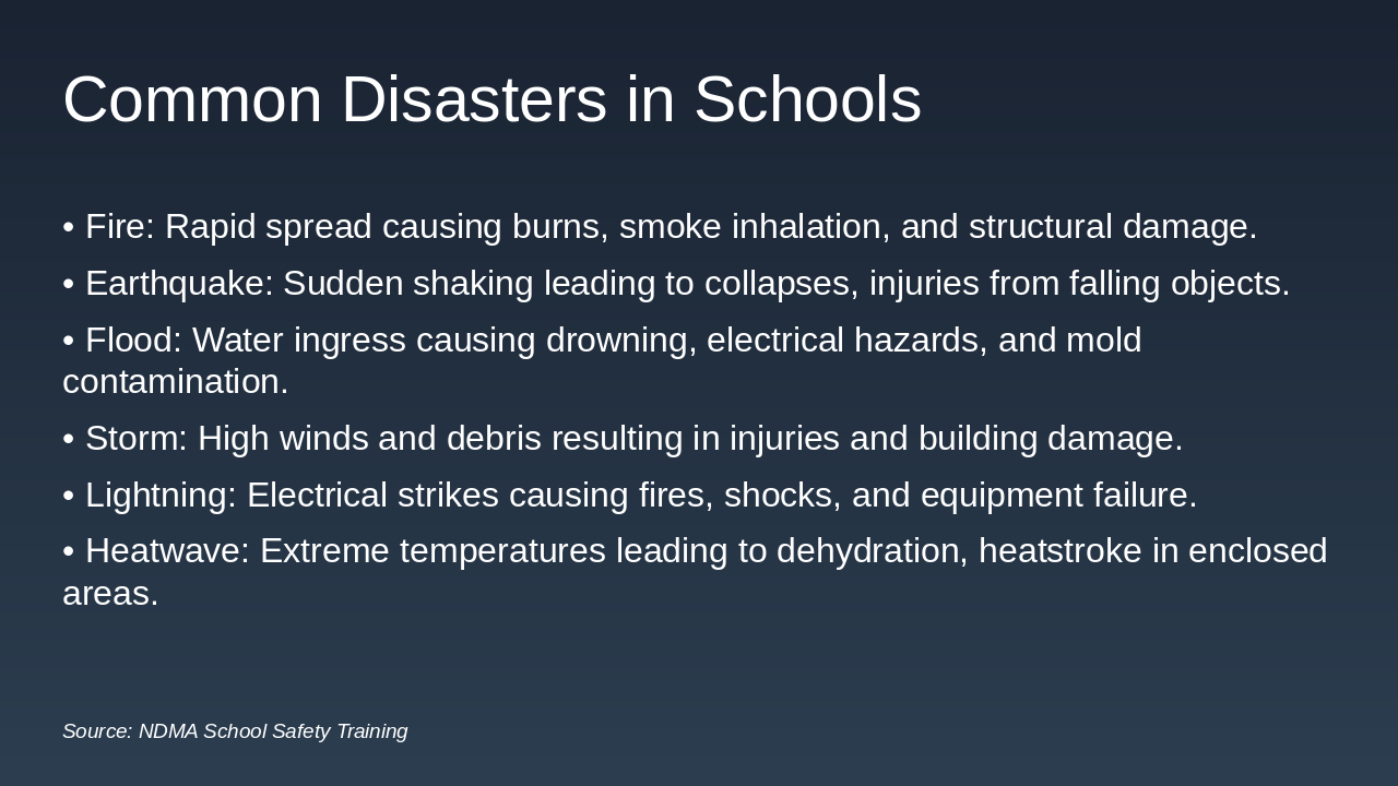 Source: Disaster Preparedness & Response in Schools — A Teacher’s Guide to School Safety