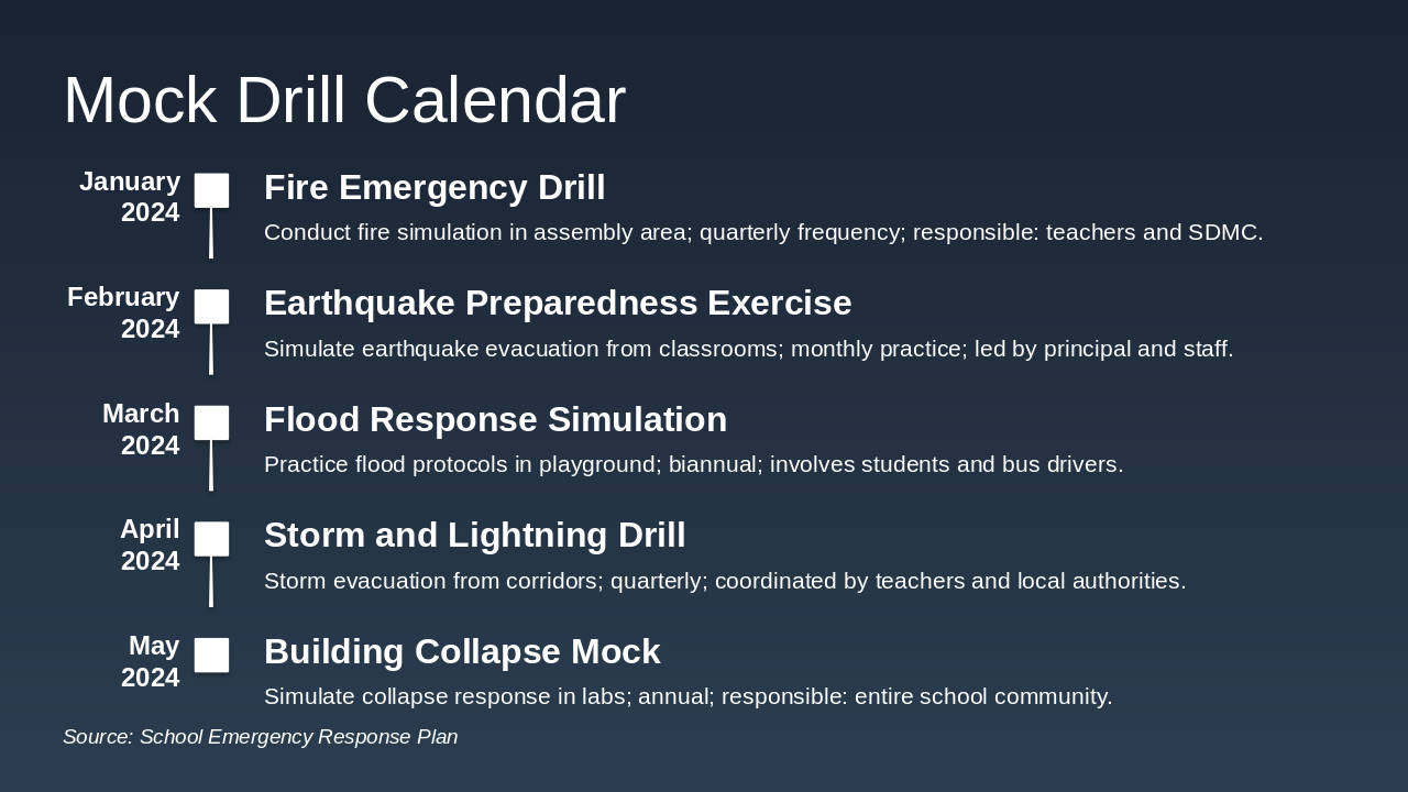 - Implement SERP and conduct monthly mock drills.