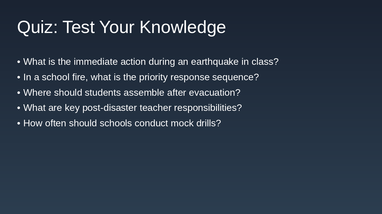 Call to Action: Commit today: Lead drills, audit risks, and inspire your students to own safety.**