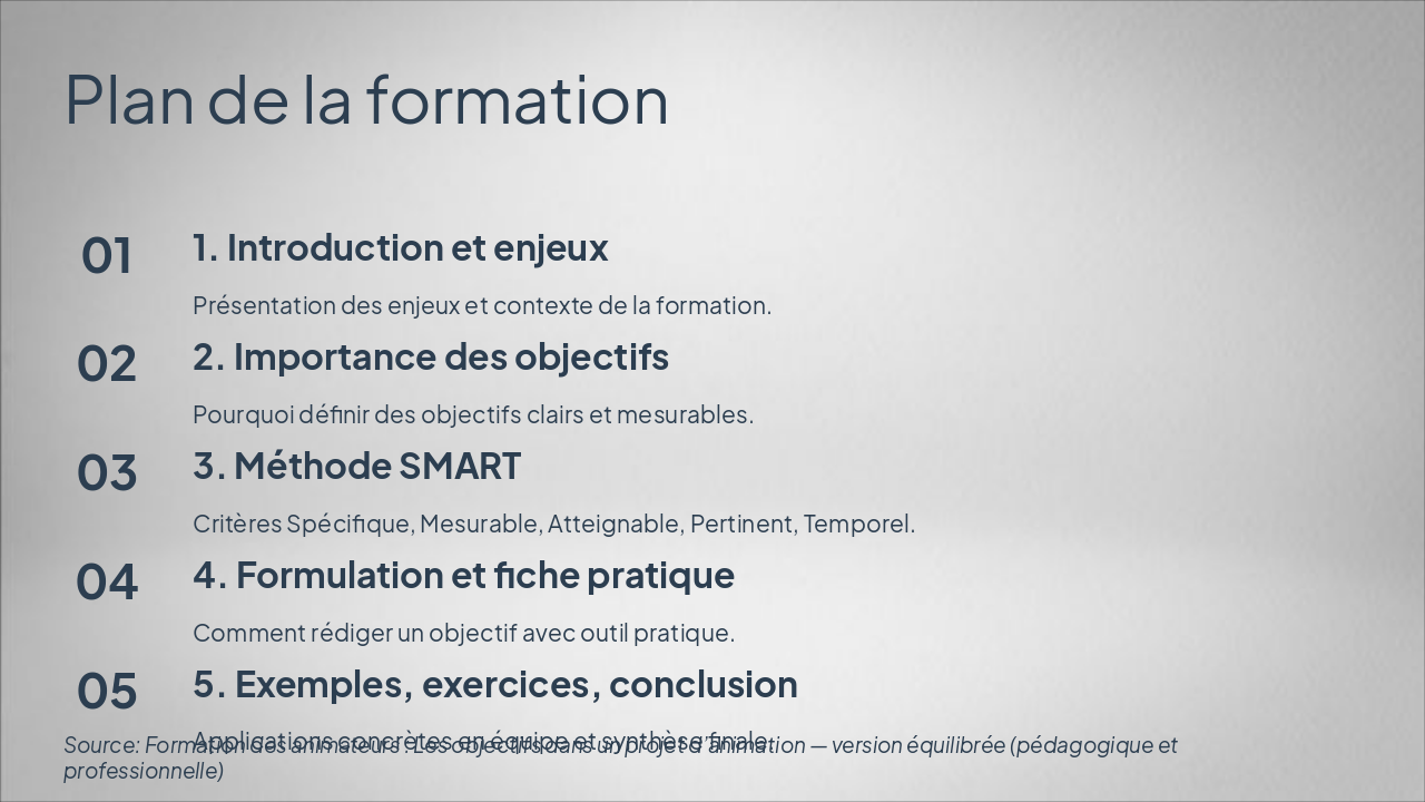 Source: Formation des animateurs : Les objectifs dans un projet d’animation — version équilibrée