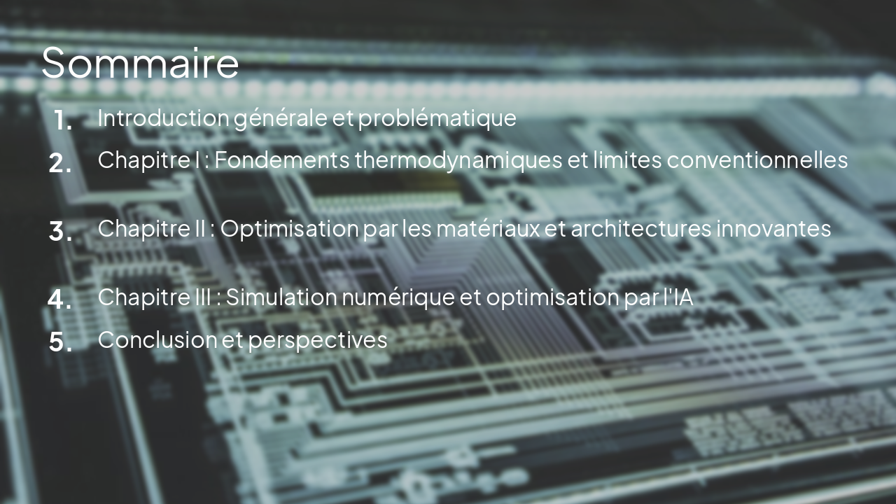 Présentation sur l'optimisation des moteurs à combustion interne : analyse thermodynamique du cycle de Beau de Rochas, innovations en matériaux et architectures (aluminium, céramiques, fabrication additive), simulations numériques (CFD, EF) et rôle l