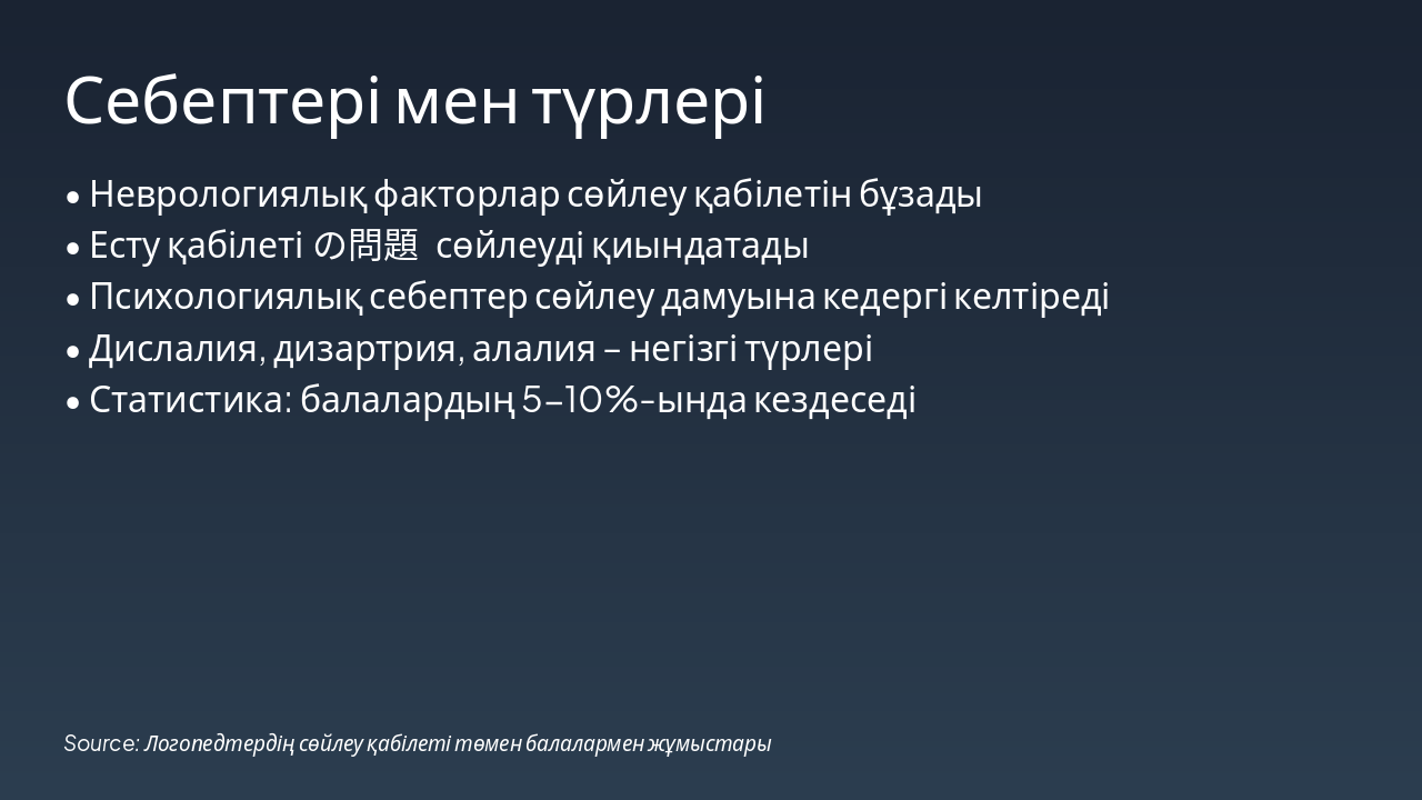- 2. Сөйлеу қабілеті төмендік себептері