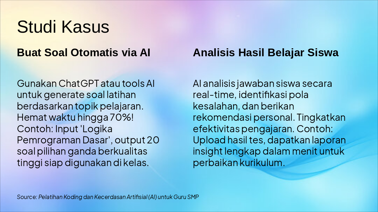Buat sesi ini menyenangkan! Dorong guru untuk bereksperimen dan berbagi cerita sukses mereka agar inspiratif.
