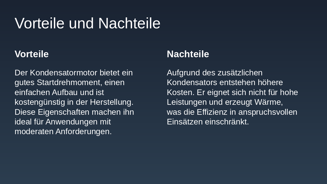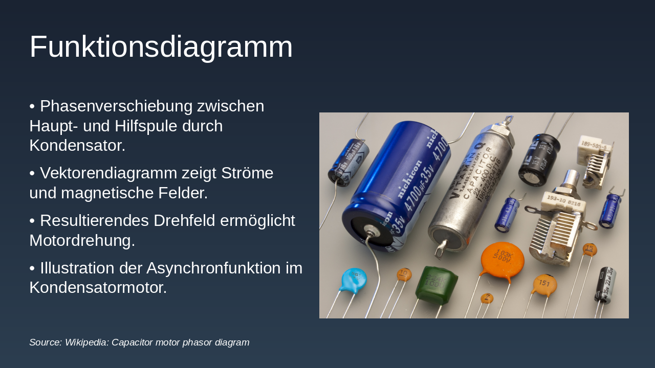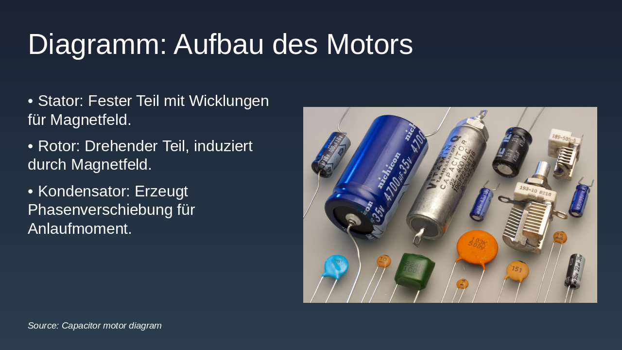 Schlussbotschaft: Der Kondensatormotor – Ihr Einstieg in die Elektrotechnik. (6 Wörter)