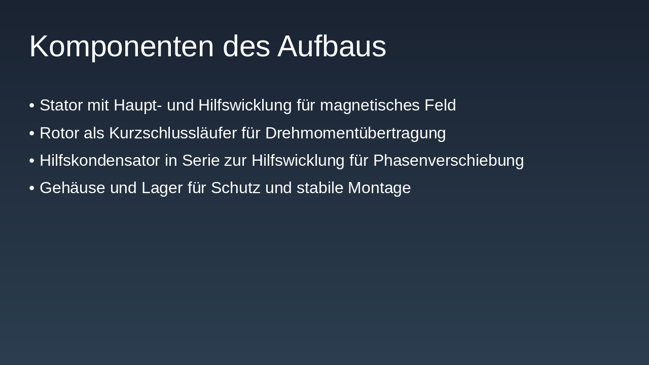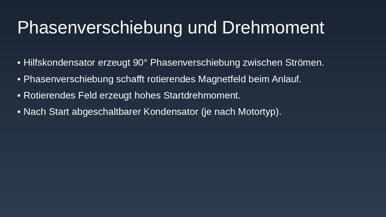 Der Kondensatormotor ist ideal für kompakte, einphasige Anwendungen mit gutem Startverhalten. Er eignet sich perfekt für den Einstieg in die Elektrotechnik.