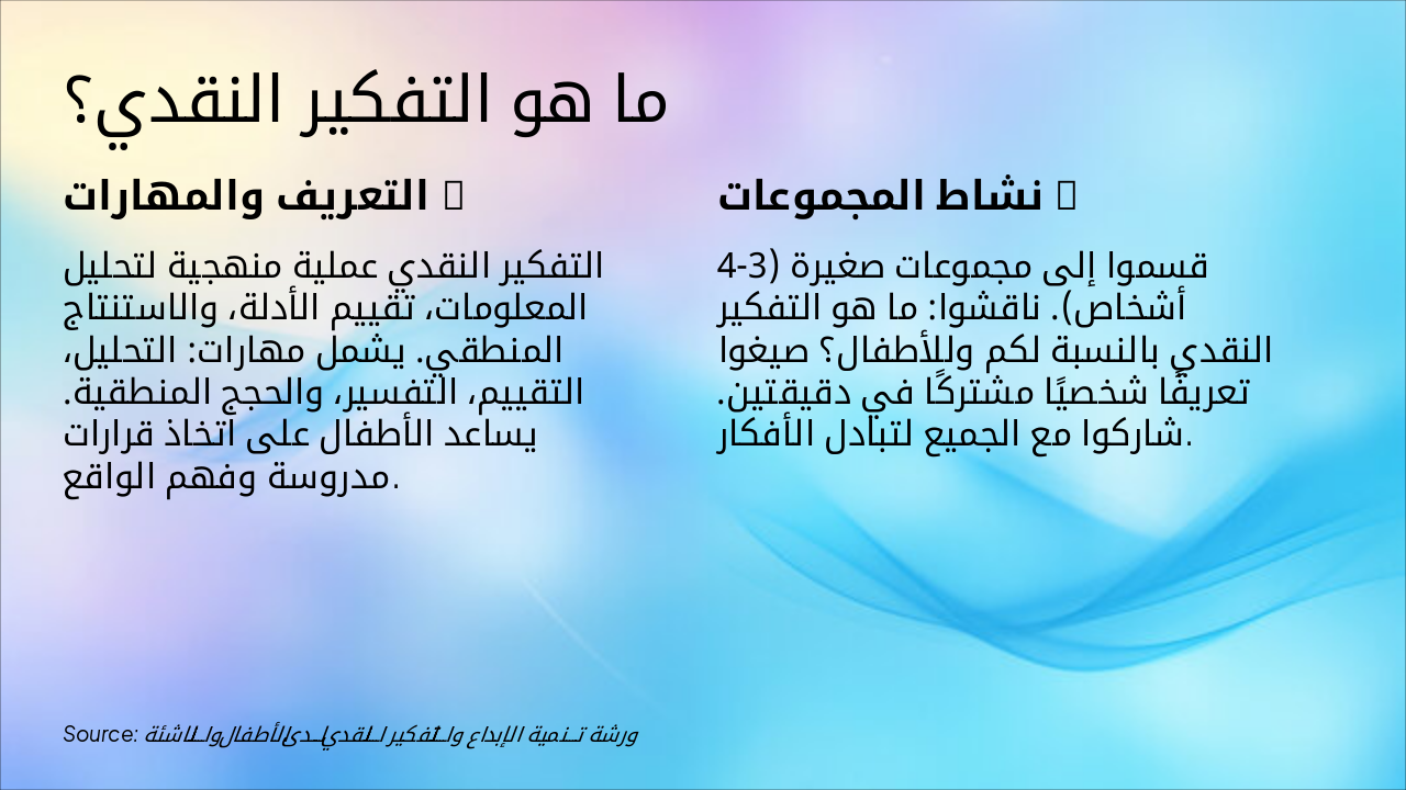 شبكة أنشطة تفاعلية: لعبة الشيء الغامض وتحديات التصميم مع وصف مختصر وكيفية التطبيق لتطوير التفكير النقدي والإبداعي لدى الأطفال.