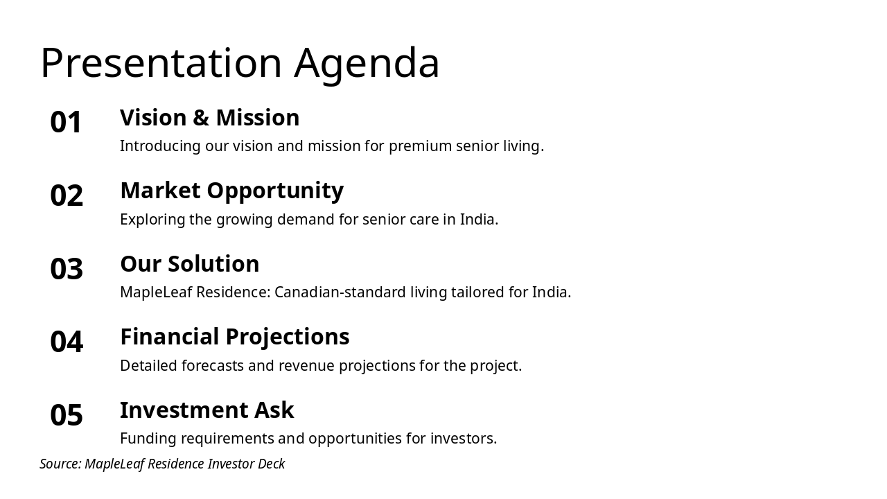 Source: MapleLeaf Residence Investor Deck — Premium Canadian-Standard Senior Living in India