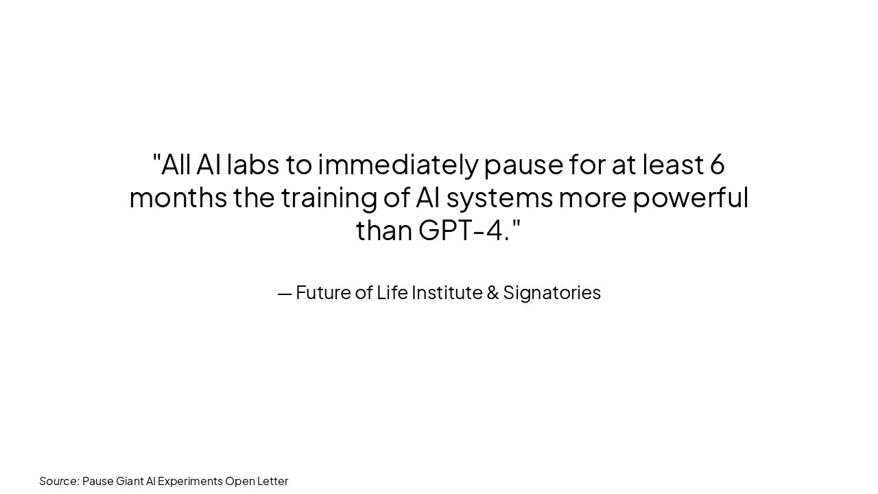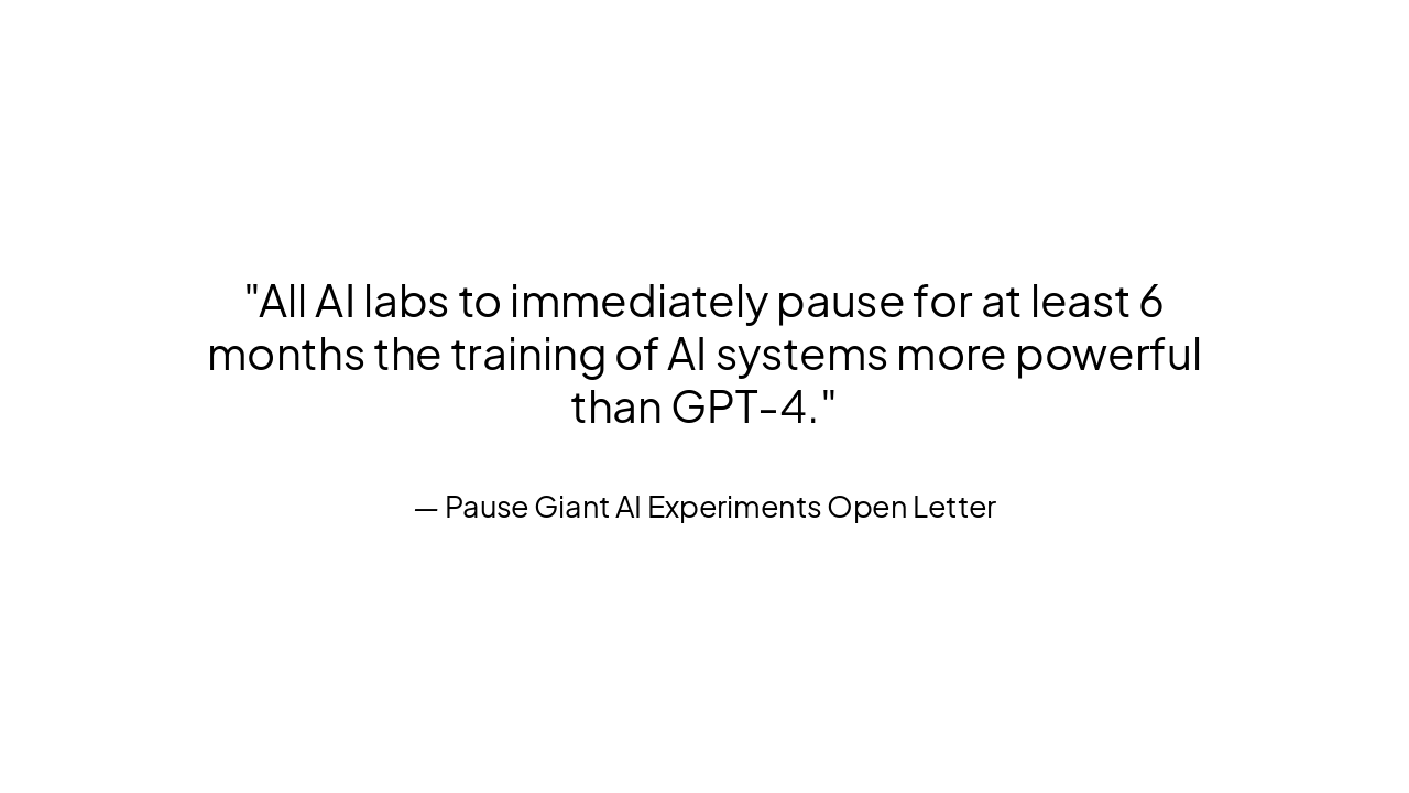 > All AI labs to immediately pause for at least 6 months the training of AI systems more powerful than GPT-4.