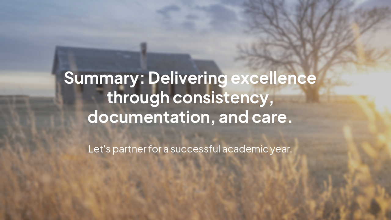 Summary: Delivering excellence through consistency, documentation, and care.