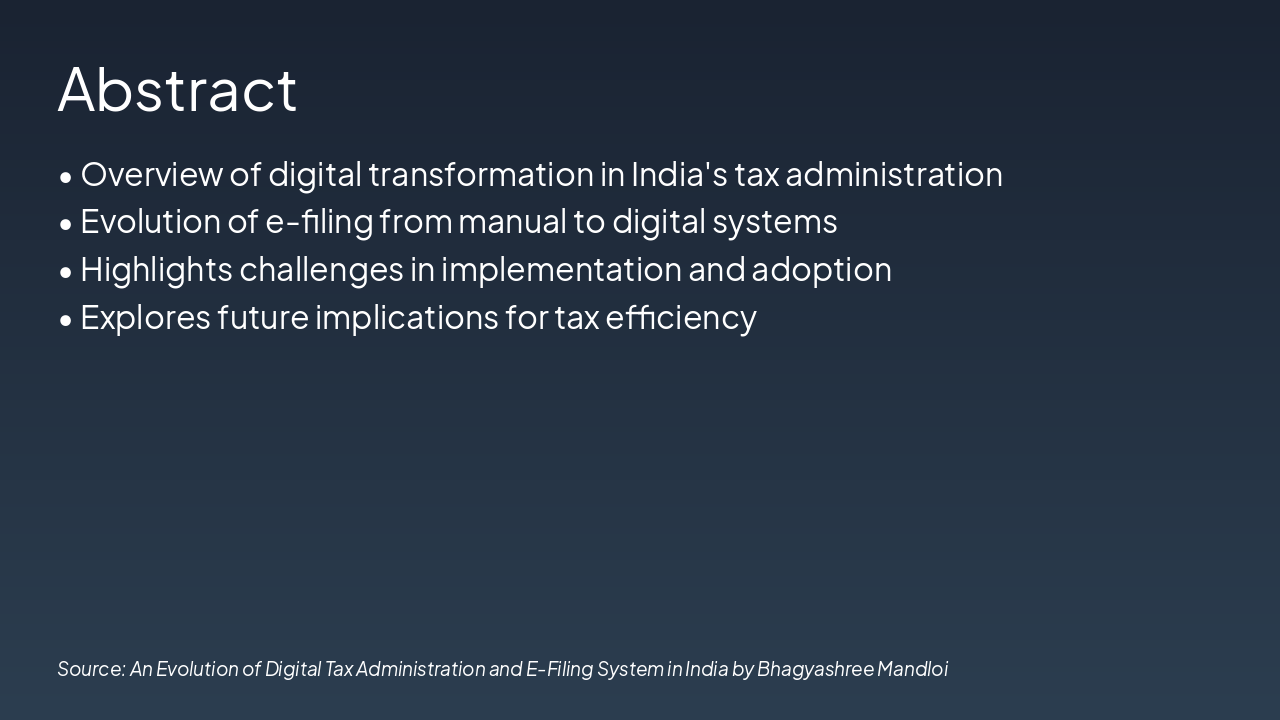 Source: An Evolution of Digital Tax Administration and E-Filing System in India By Bhagyashree Mandloi [Date] Research Report Presentation