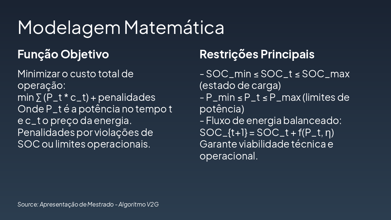 Source: Apresentação de Mestrado - Algoritmo V2G
