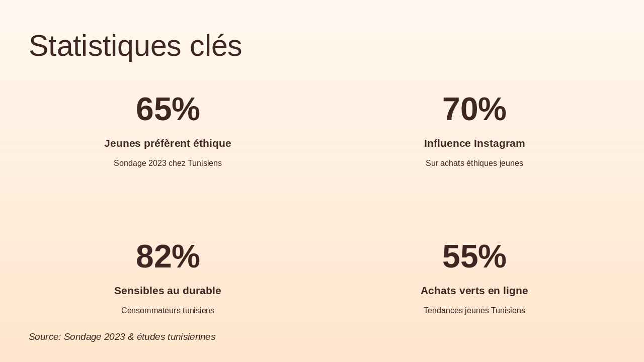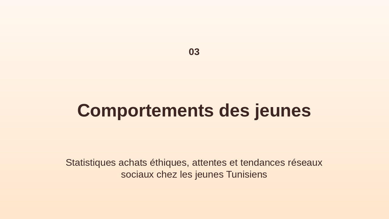3️⃣ **Comportements des jeunes consommateurs** : statistiques sur les achats éthiques, attentes, tendances et influence des réseaux sociaux.