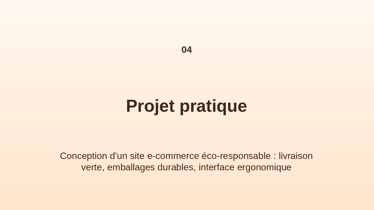 4️⃣ **Projet pratique** : conception d’un site e-commerce éco-responsable (livraison verte, emballages durables, interface ergonomique).