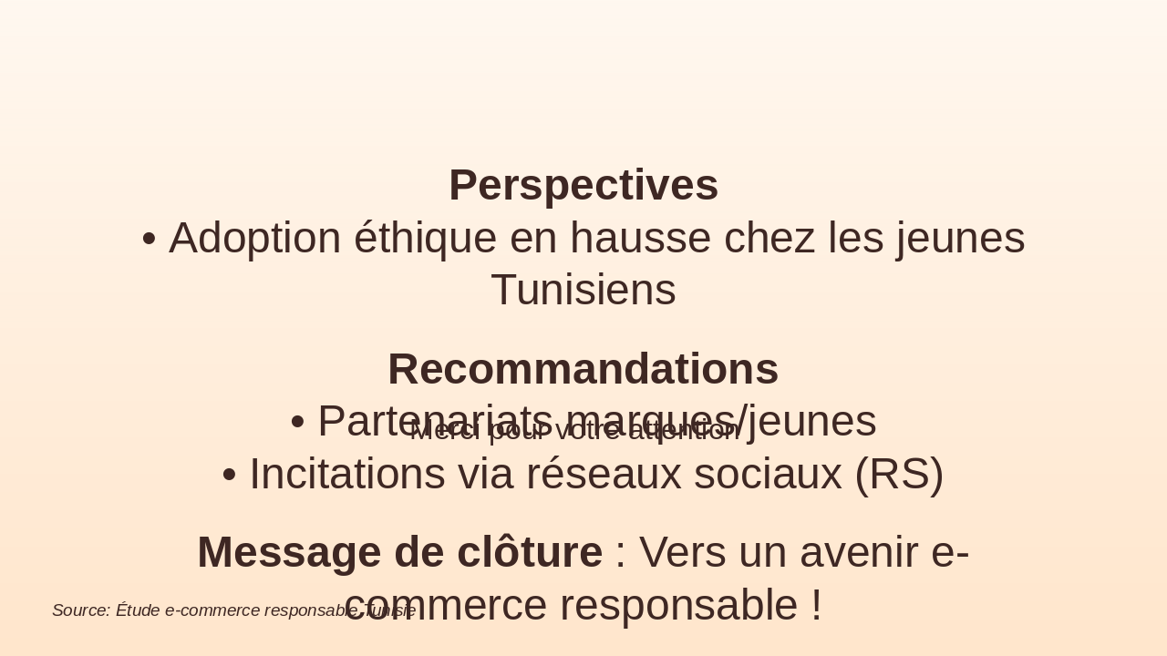 Digitalisation équitable Afrique et recommandations finales. Source: Présentation sur le thème : Étude du e-commerce responsable et des comportements d'achat éthiques chez les jeunes consommateurs tunisiens.