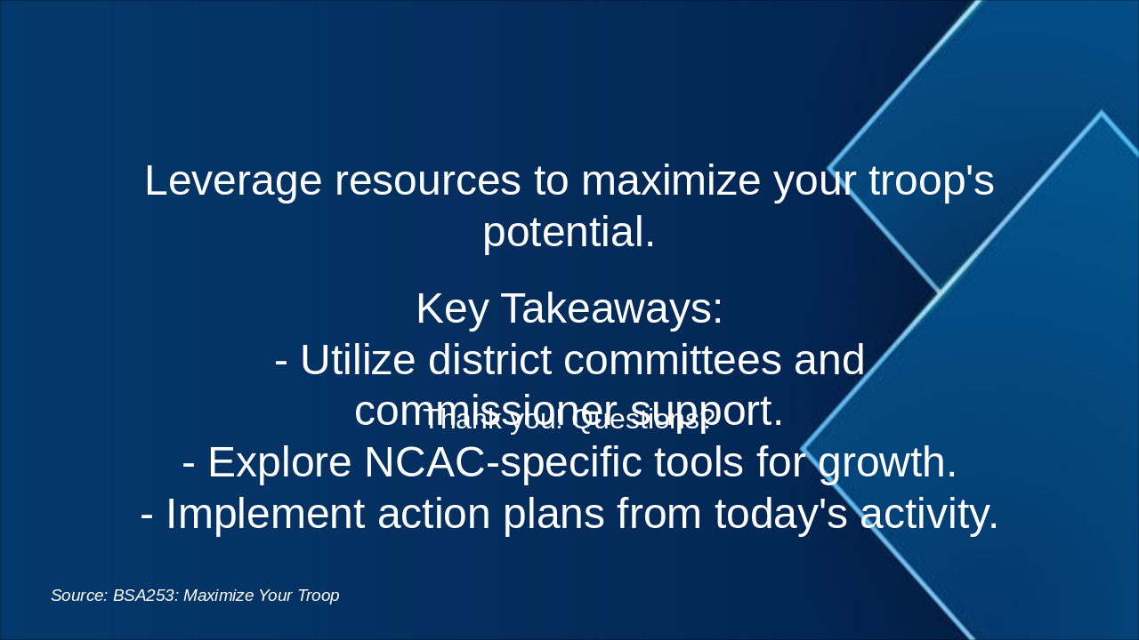 Membership: Focus on recruiting and retaining Scouts and families. | Roundtable (📅): Network with peers, stay current on BSA news—boosts program quality.