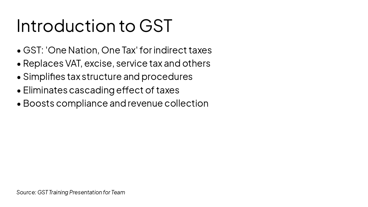 Source: GST Training Presentation