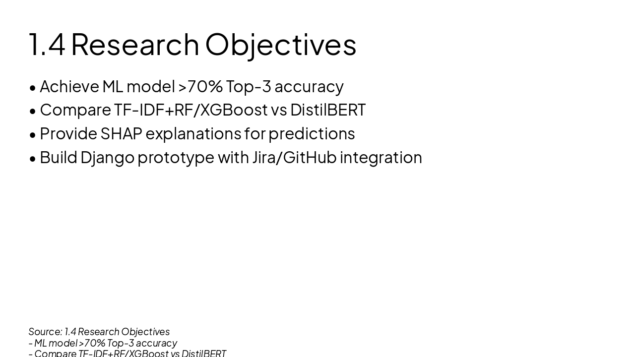 Proposes ML framework automating bug triage in agile Jira workflows using Spring dataset. Compares TF-IDF/XGBoost vs DistilBERT for >70% top-3 accuracy, SHAP explainability, addressing gaps in scalabi