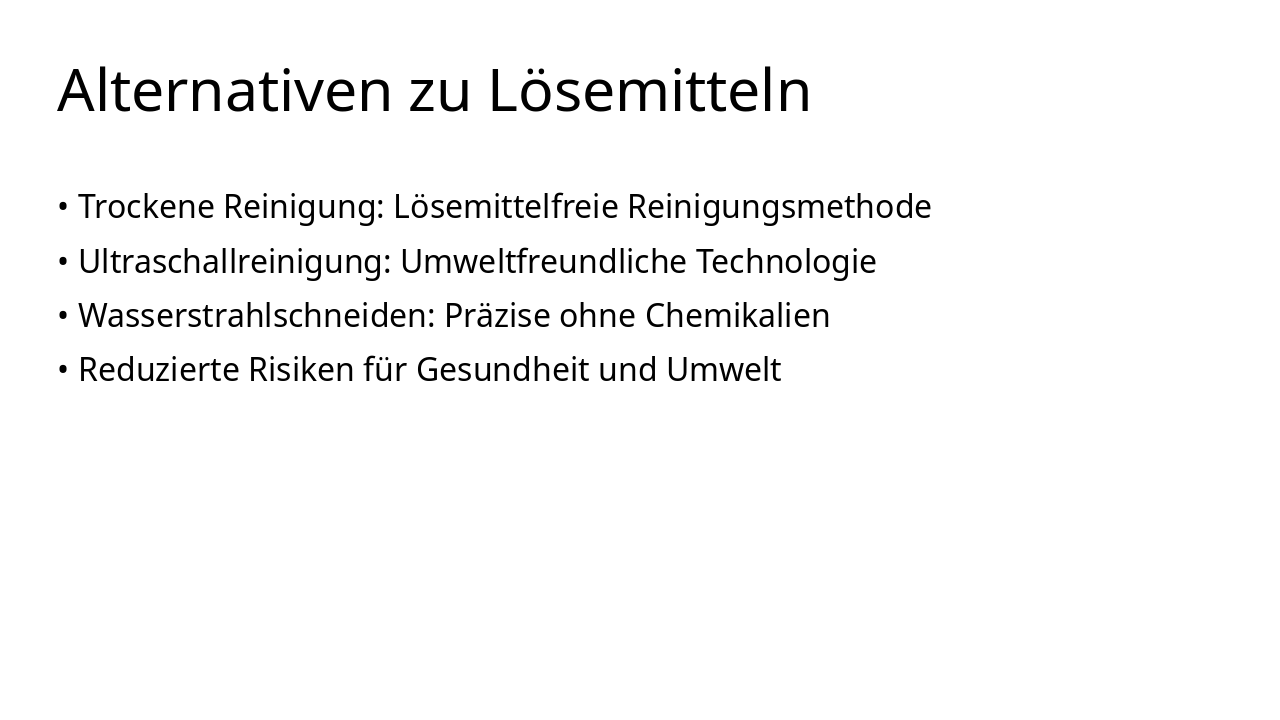 | Organische Lösemittel | Anorganische & Wasserbasierte Lösemittel |
