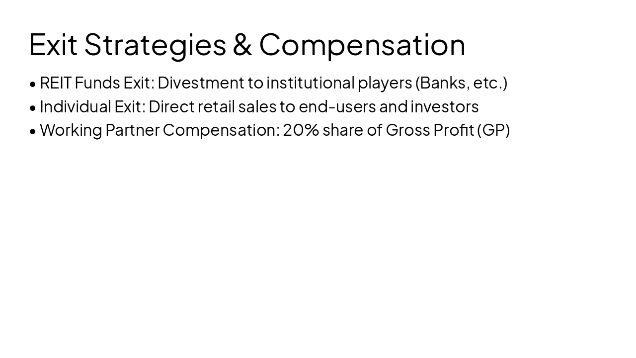 powerpoint - concept - landowner, approx. 30 acres land / land in a company REIT - REIT Company - Land Development / Project Launching 30% Land, 30% Dev. Cost, 40% Profit Cost of Development Project Direct/Indirect Expenses (7% Professionals - Architects, Engineers, Master Planners) (23% Direct) This is a model FDI - Foreign Direct Investment into the company 1. Individual Investors - Injections via Saakra A/C 2. Corporate FDI - Direct investment into REIT cOMPANY THROUGH THEIR OWN COMPANY 3 Partners - Landowner / FDI Company / Individual Investors - SAAKRA A/C Responsibilities Landowner - Clear Title of Land and possession / Necessary permissions as per byelaws JV Partner - 1. KYC on the Funds received from Individual and Corporate FDI / 2. Arrange necessary (Add Additional responsibilities) Working Partner - 1 Nominee from the landowner, 1 nominee from the investment company -Responsiblity - necessary planning for utilities - coordinate master developer - tender process for project development - tender with relevant marketing companies globally and locally (Add additional responsibilities) Cost Of Land - 1 Billion GP - Working Partner 20% of GP - Working Share NP Exit - 2 strategies 1. REIT Funds (banks etc.) 2. Sales to Individuals Target Market - Overseas Pakistanis - Due to current slowdown in Middle East the funds will be repatriated by Overseas Pakistanis (UK, Pakistan) Investment Opportunity right now - Gulf slowdown (Expected to continue for the next 2-3 years) Many OSPs based in the UK/Spain etc. were sending money to the gulf which will be redirected here.
