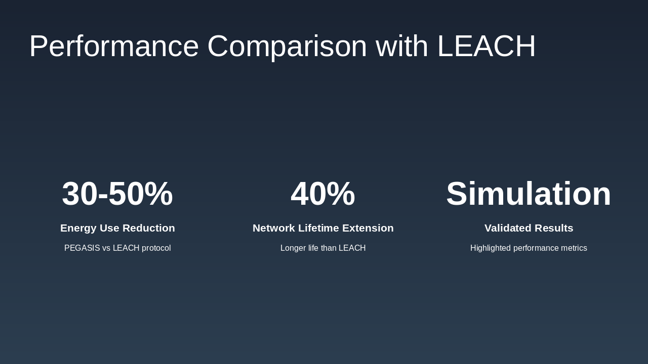 Summarize key points: PEGASIS improves efficiency over LEACH; highlight benefits of hierarchical routing like energy savings and scalability. Suggest future hybrid protocols. End with Q&A.