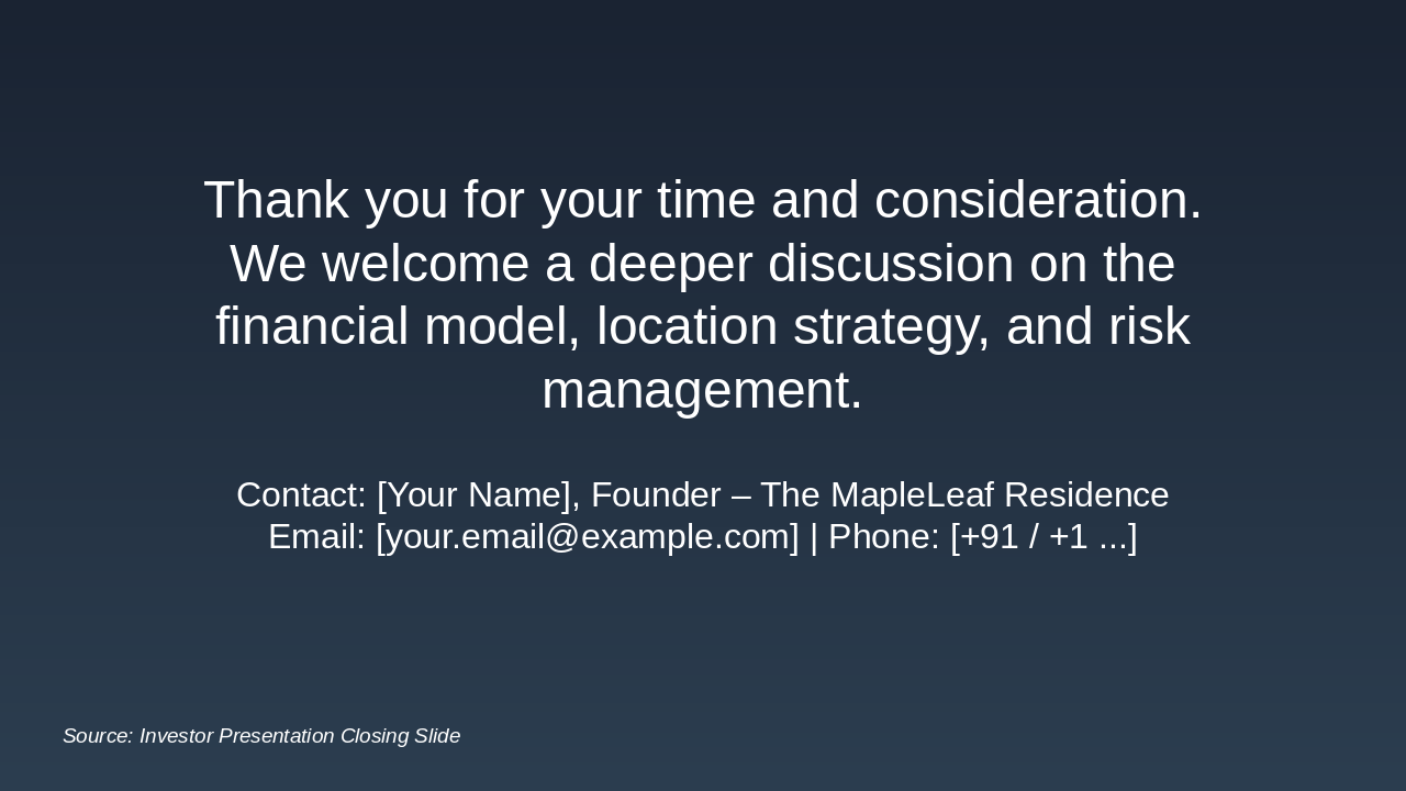 - Contact: [Your Name], Founder – The MapleLeaf Residence