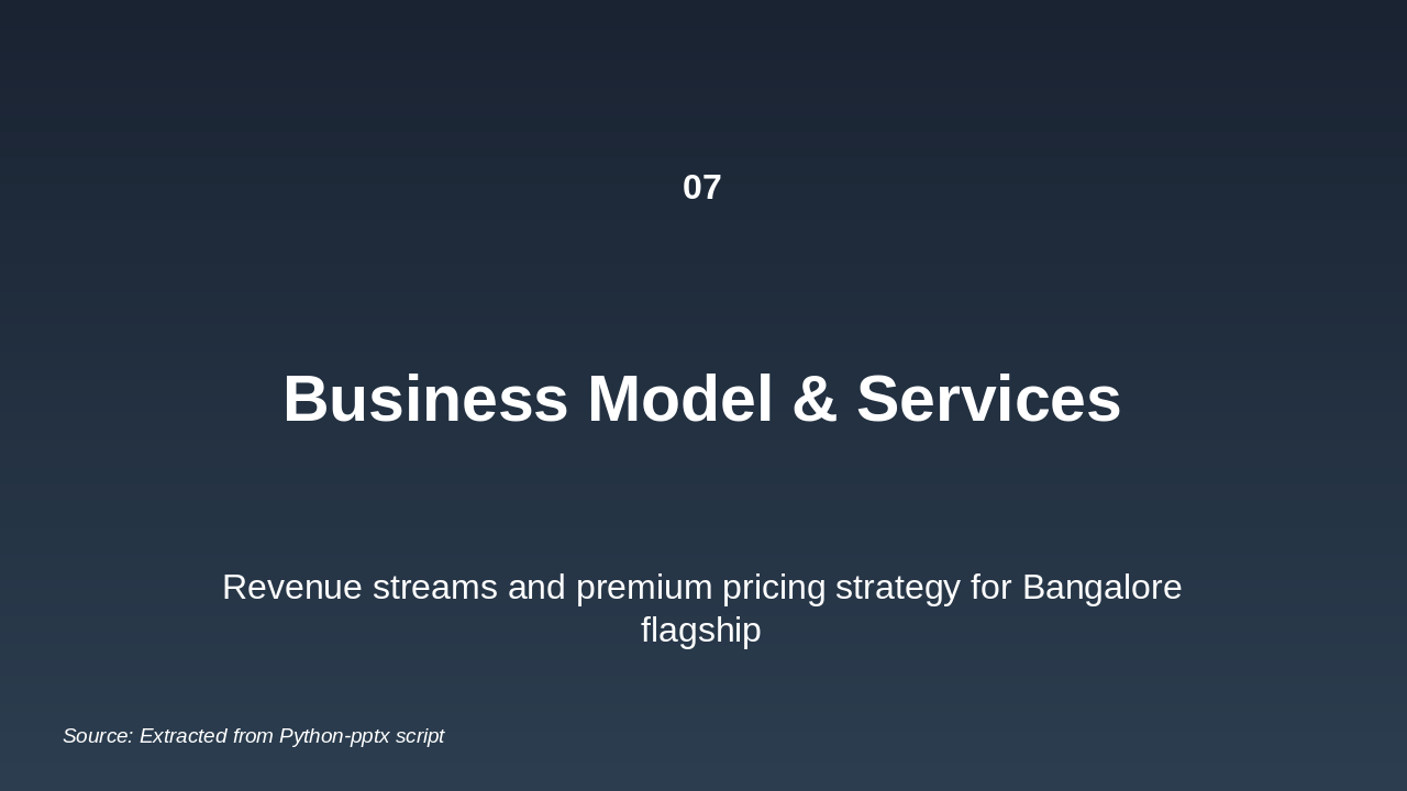 - Launch a premium flagship in Bangalore as a proof of concept.