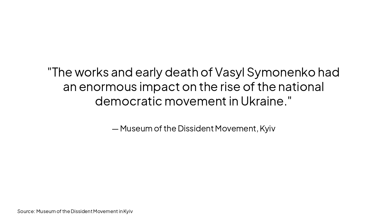 > The works and early death of Vasyl Symonenko had an enormous impact on the rise of the national democratic movement in Ukraine.