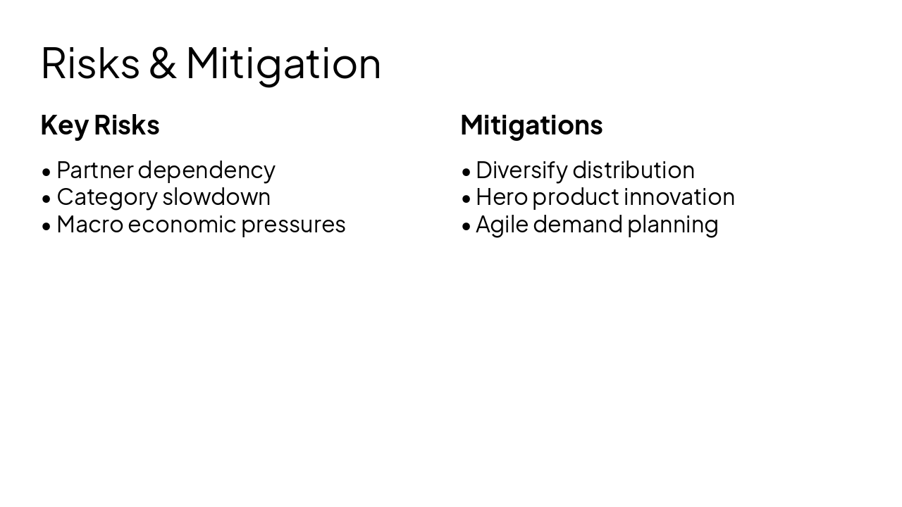 | Q3-Q4 2026 | Expand retail partnerships | 40% DTC, 60% Wholesale balance |