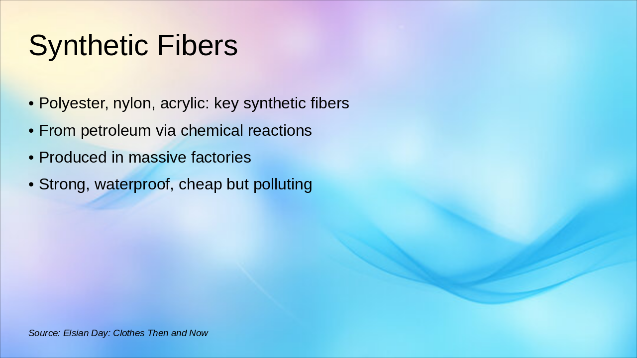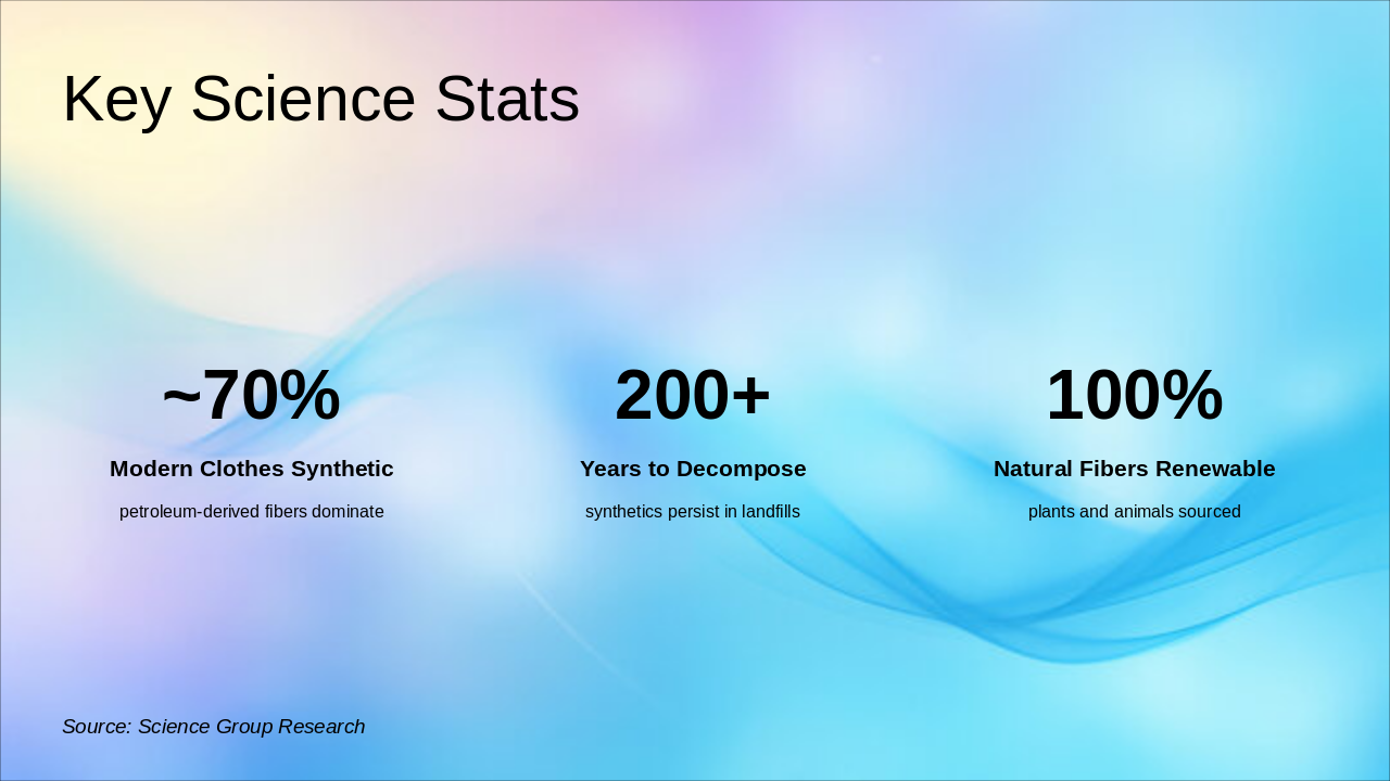 This agenda covers clothing evolution from past natural fibers like cotton and wool—biodegradable and chemical-free—to modern synthetics like polyester, nylon, and acrylic, which are durable but polluting. It concludes with a comparison of benefits, drawbacks, environmental impacts, and future sustainable innovations.