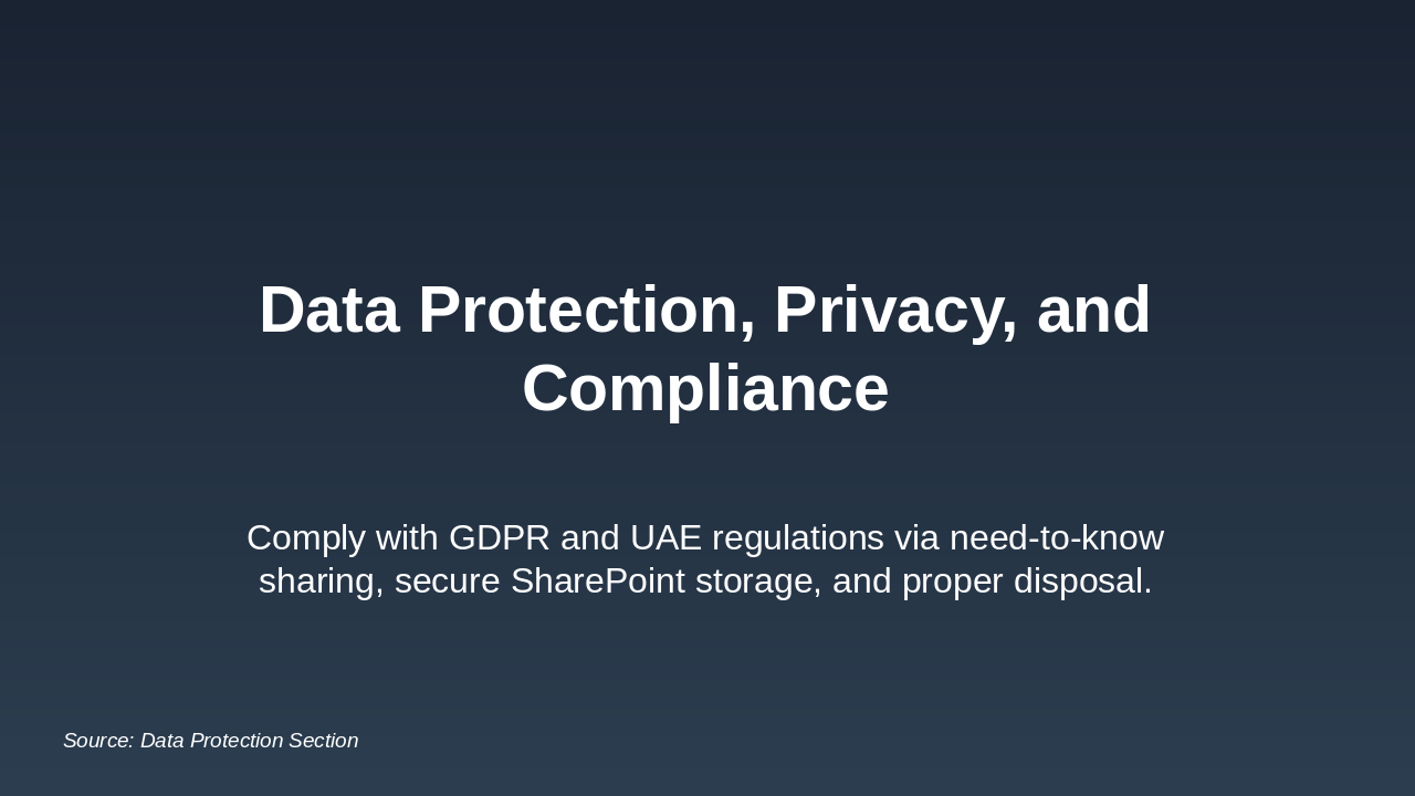 We handle confidential client, company, and personal data. Our practices must meet legal requirements (like GDPR/UAE regulations) and uphold client trust. Treat all data as sensitive by default.