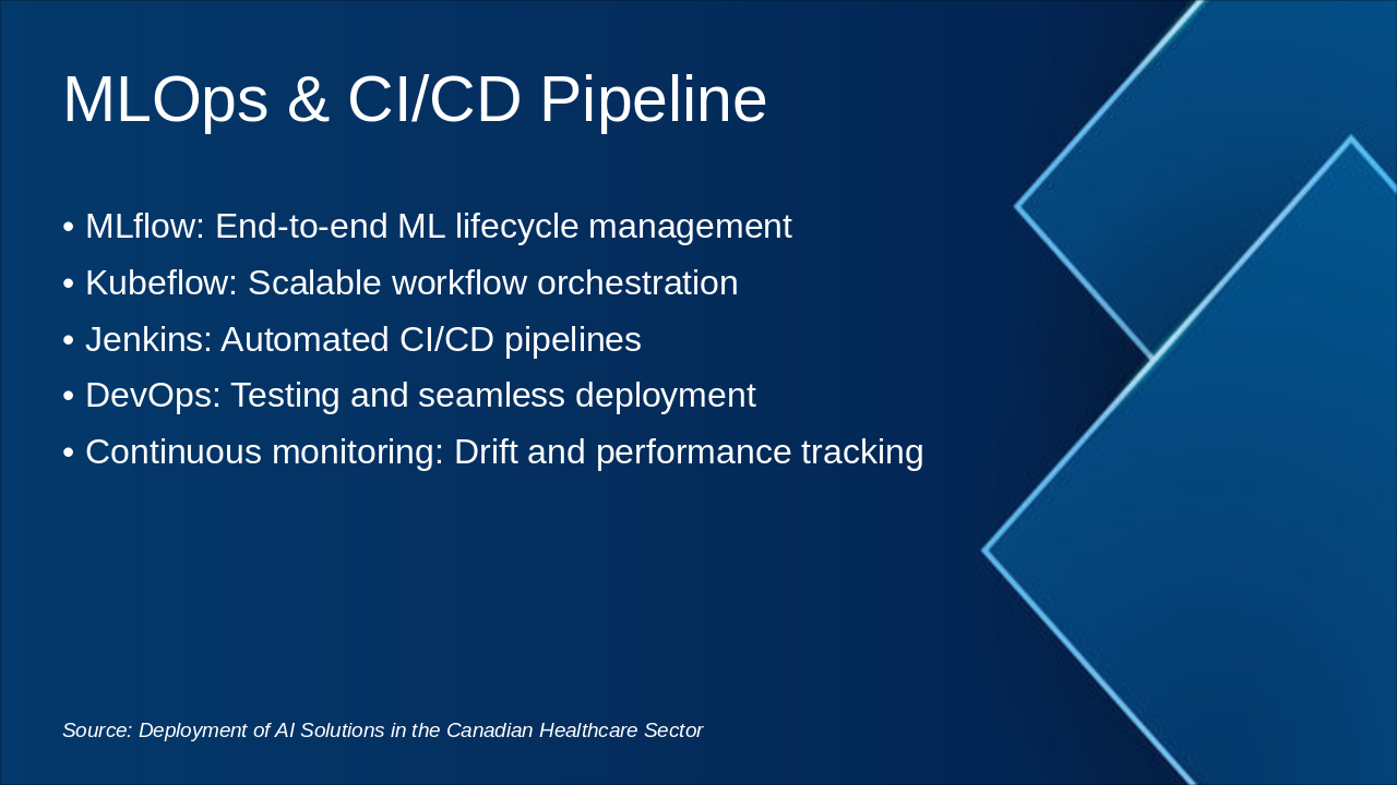 Phase 1: Data Collection Gather diverse healthcare data from EMRs, sensors, and patient records securely. Phase 2: Data Prep & Cleaning Clean, normalize, and preprocess data for quality, removing biases and ensuring compliance. Phase 3: Model Training Train AI models using ML frameworks on prepared datasets with healthcare-specific features. Phase 4: Validation & Testing Rigorous testing for accuracy, fairness, explainability, and regulatory compliance like PHIPA. Phase 5: Deployment & Monitoring Deploy via secure APIs, continuously monitor performance, and retrain to handle drift.