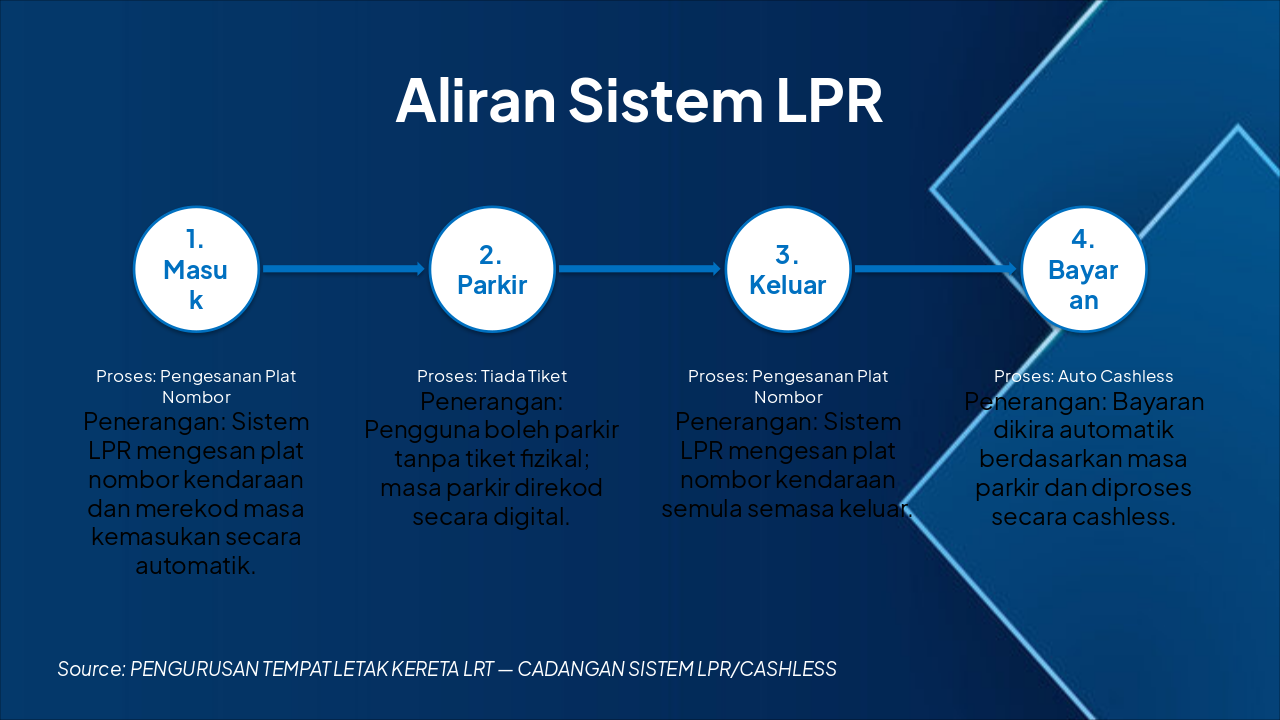 Source: PENGURUSAN TEMPAT LETAK KERETA LRT — CADANGAN SISTEM LPR/CASHLESS