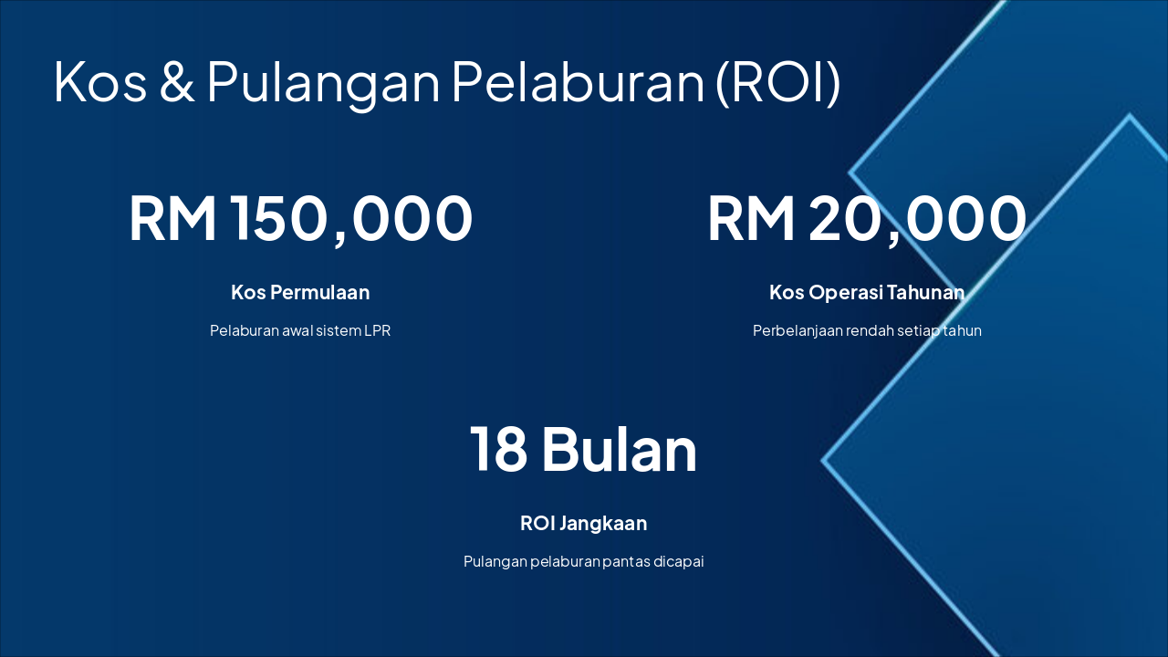 Aliran Sistem LPR terdiri daripada empat tahap: pengesanan plat nombor semasa masuk, parkir tanpa tiket fizikal dengan rekod digital, pengesanan plat semula semasa keluar, dan bayaran auto cashless. Sistem mengautomasikan pengiraan bayaran berdasarkan masa parkir yang direkod secara automatik.