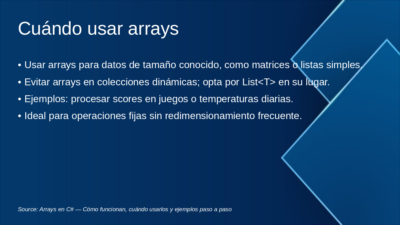 Source: Arrays en C# — Cómo funcionan, cuándo usarlos y ejemplos paso a paso