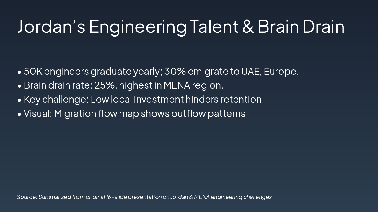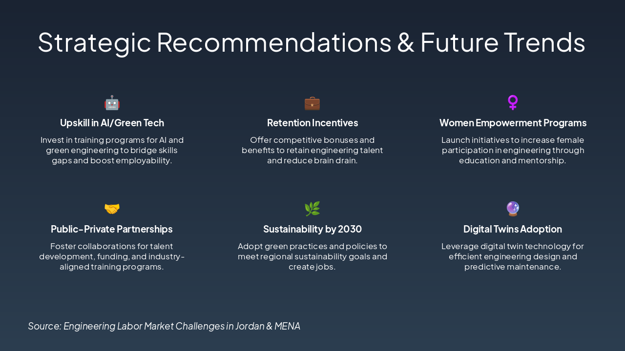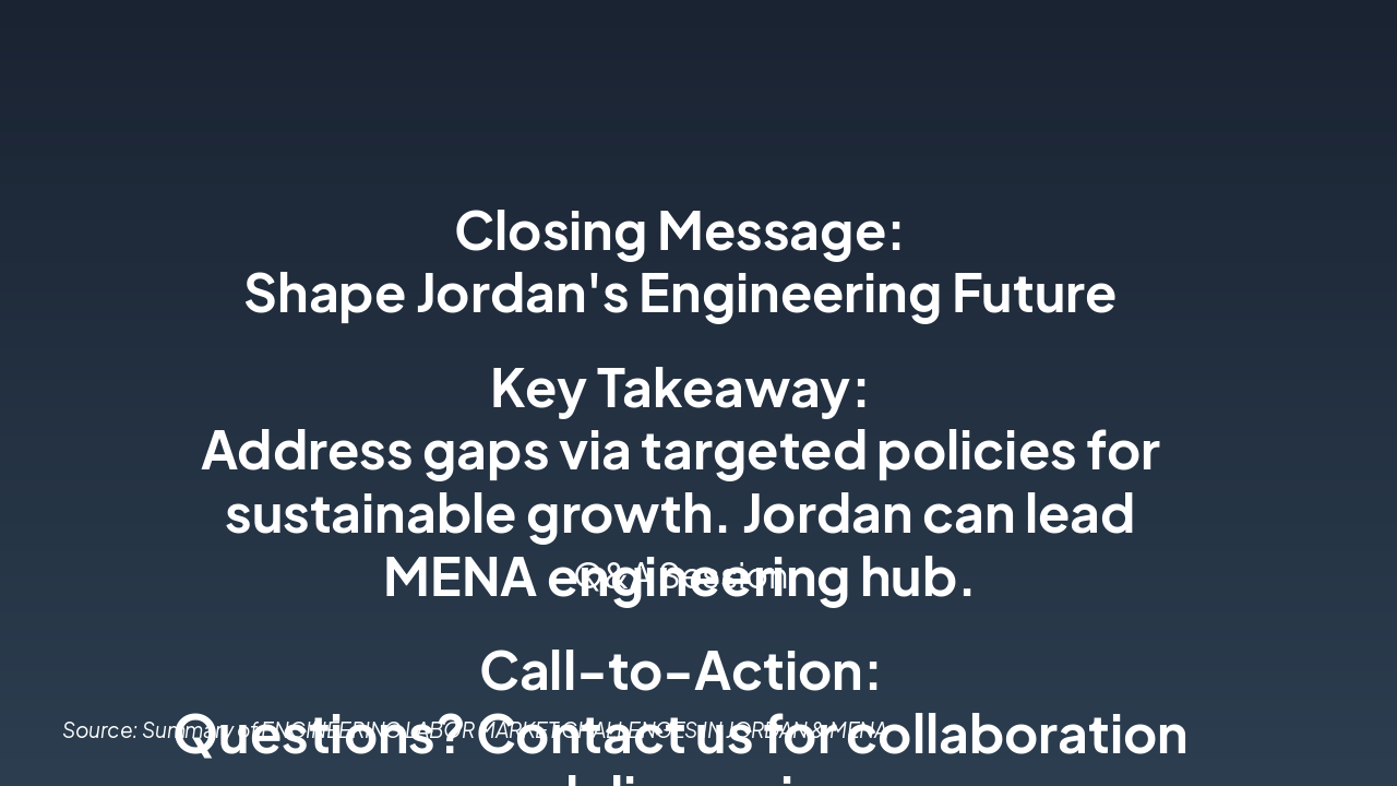 Key Takeaway: Address gaps via targeted policies for sustainable growth. Jordan can lead MENA engineering hub.