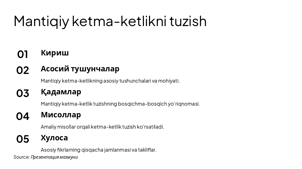 Slide 1 - Mantiqiy ketma-ketlikni tuzish