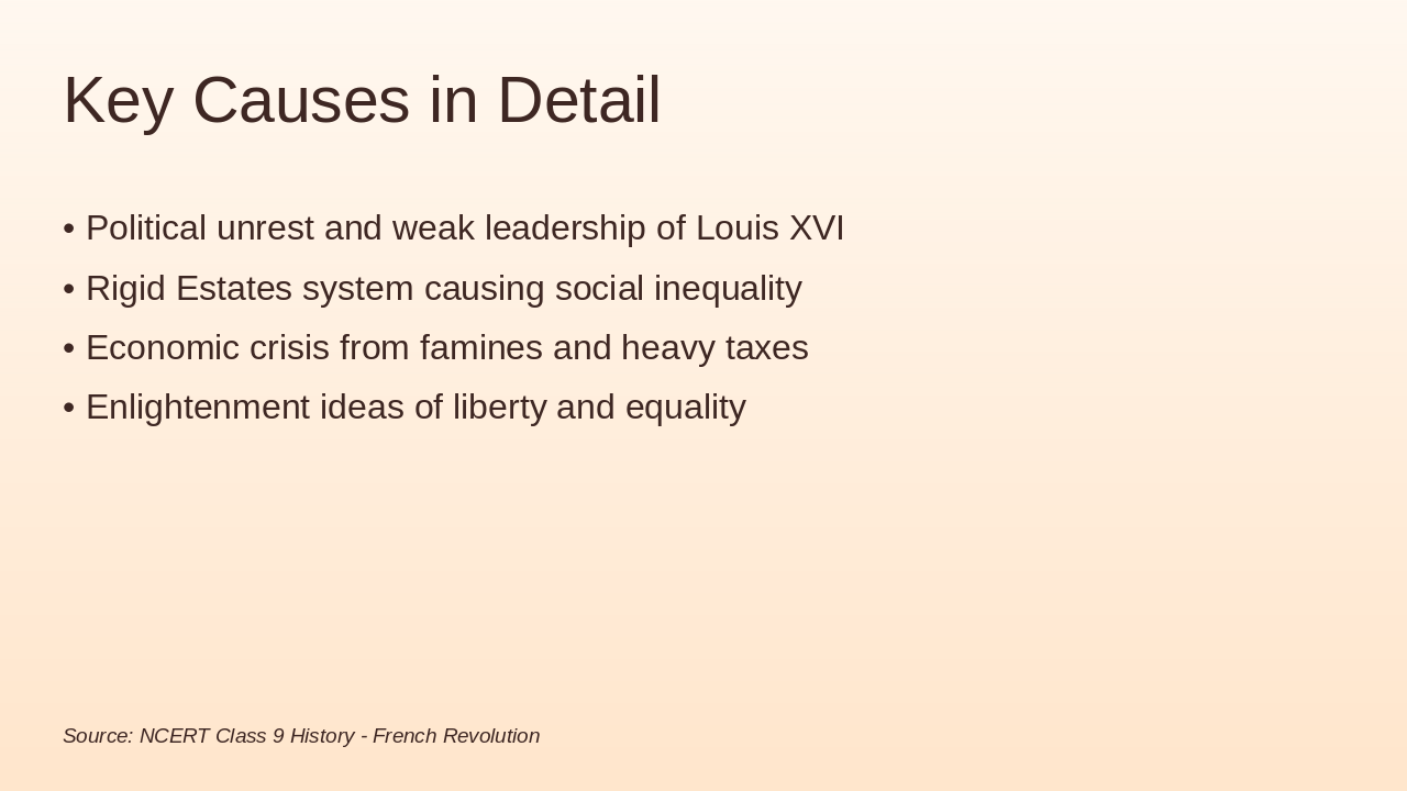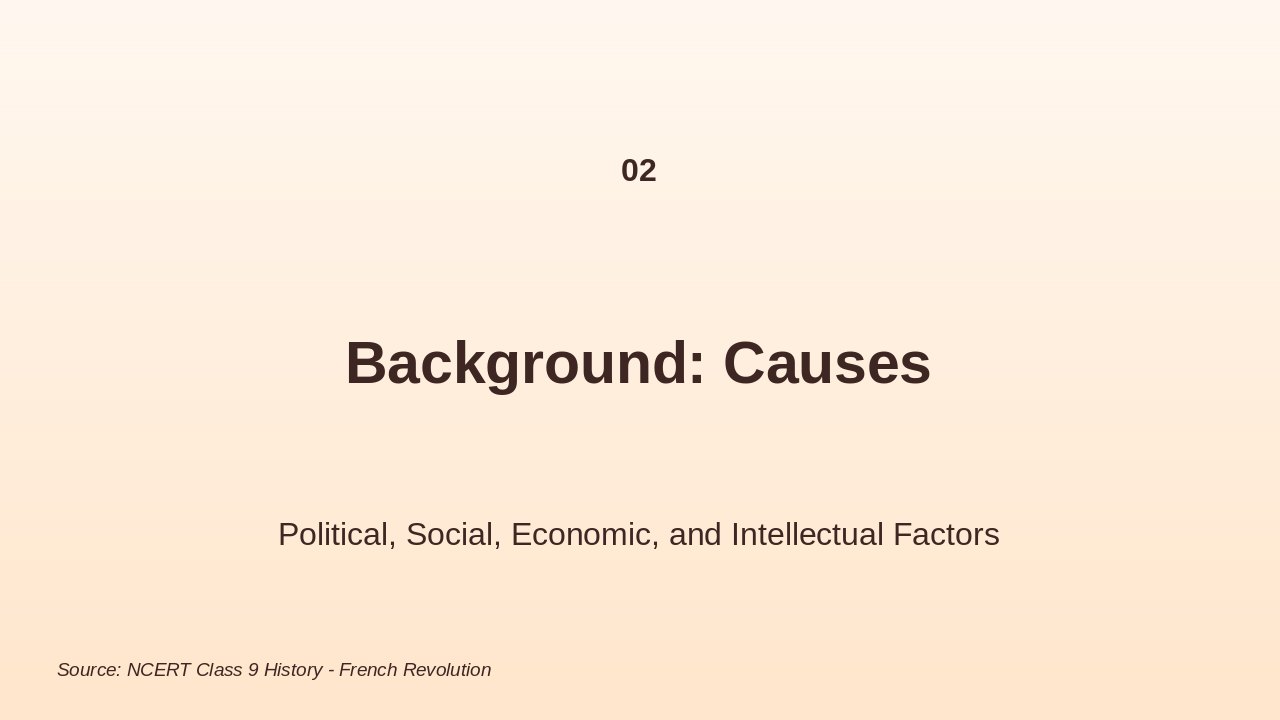 Overview of political, social, economic causes (5 mins).
