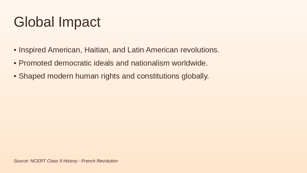 Liberty ideas, republic rise, global revolution influence (5 mins).