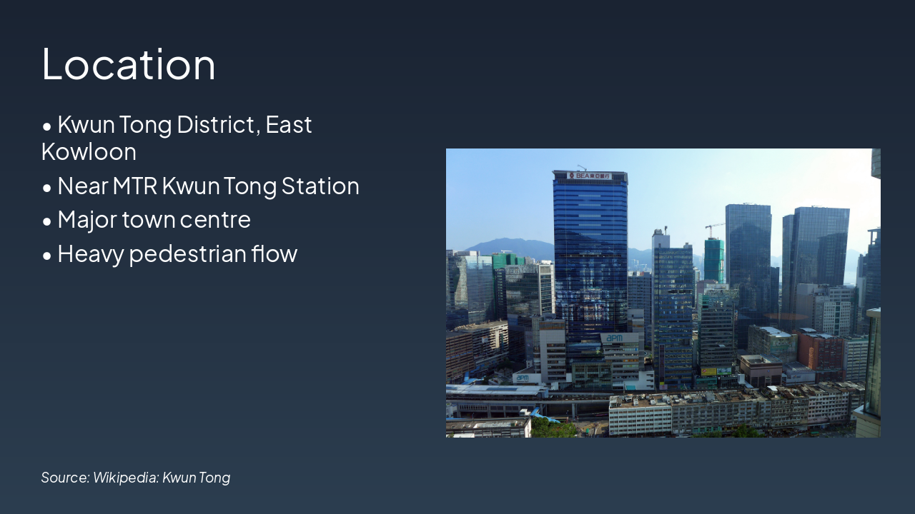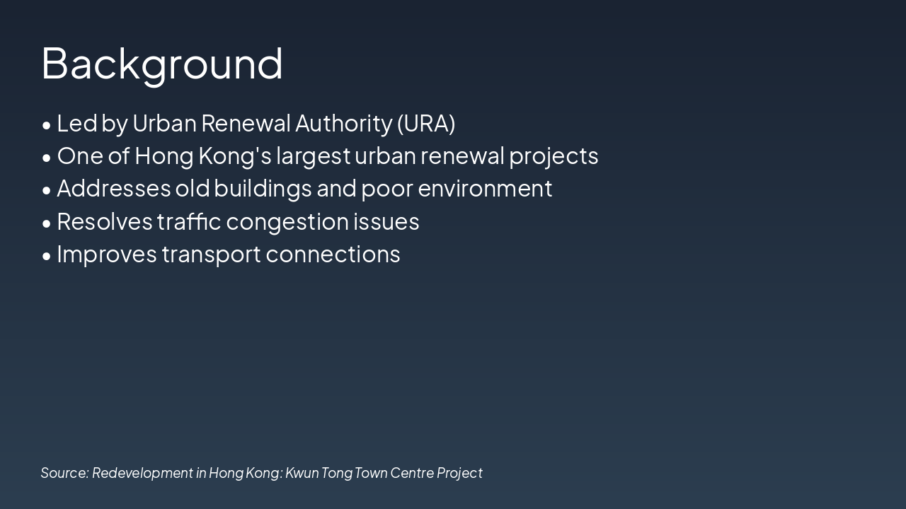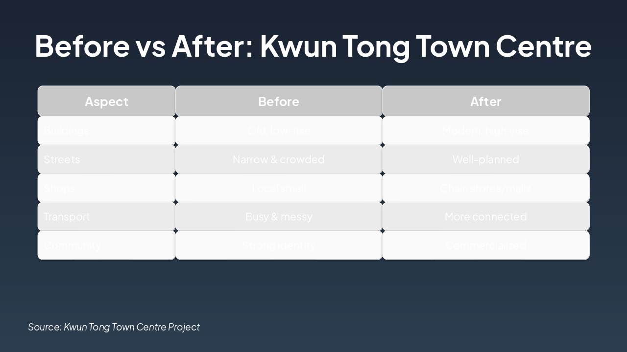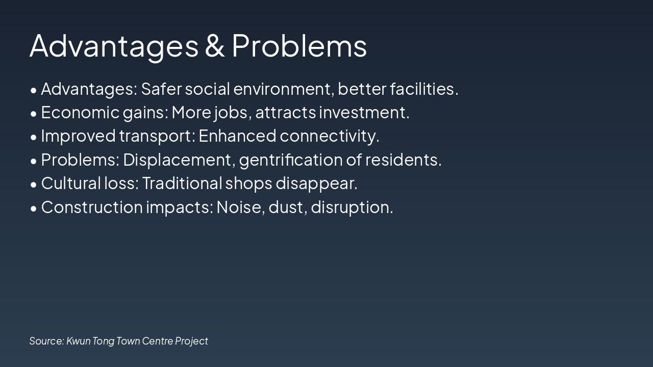Source: URA Kwun Tong Project, Transport Refs, Gentrification Studies