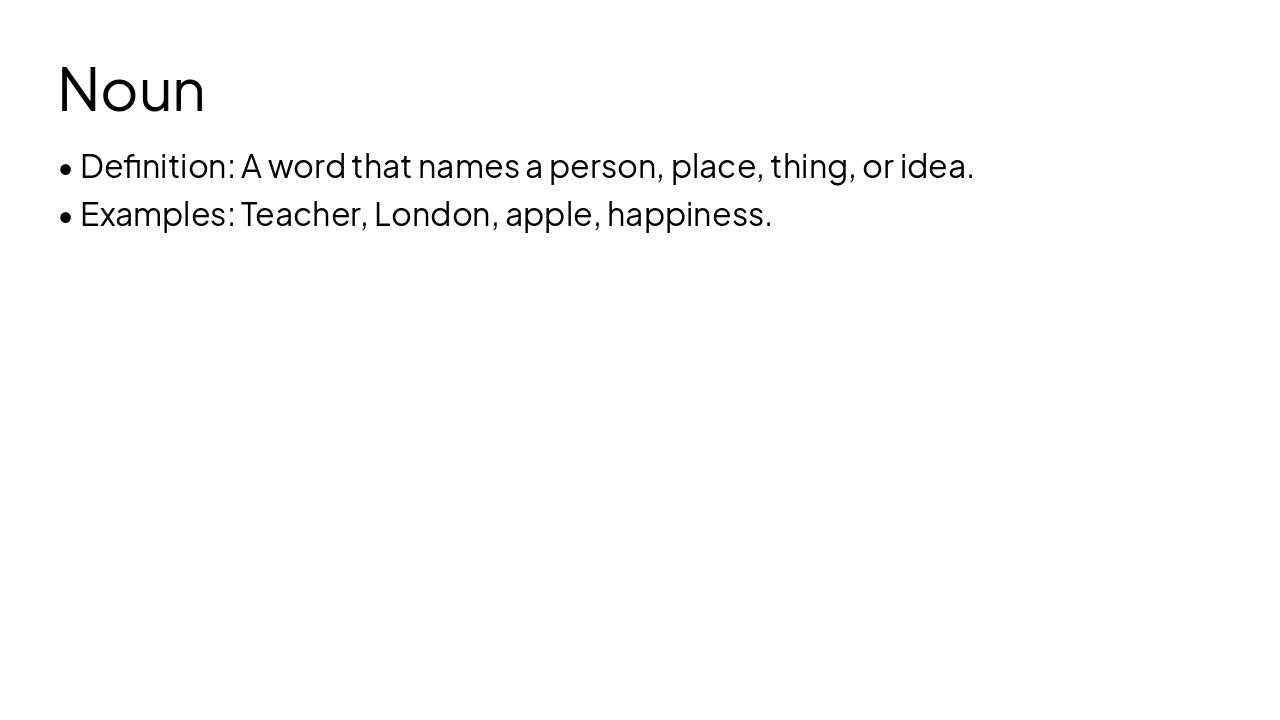 This deck explores the 8 main parts of speech in English grammar, including definitions, examples, a summary review, and practice exercises to build a strong foundation in language structure.
