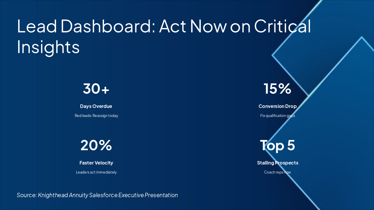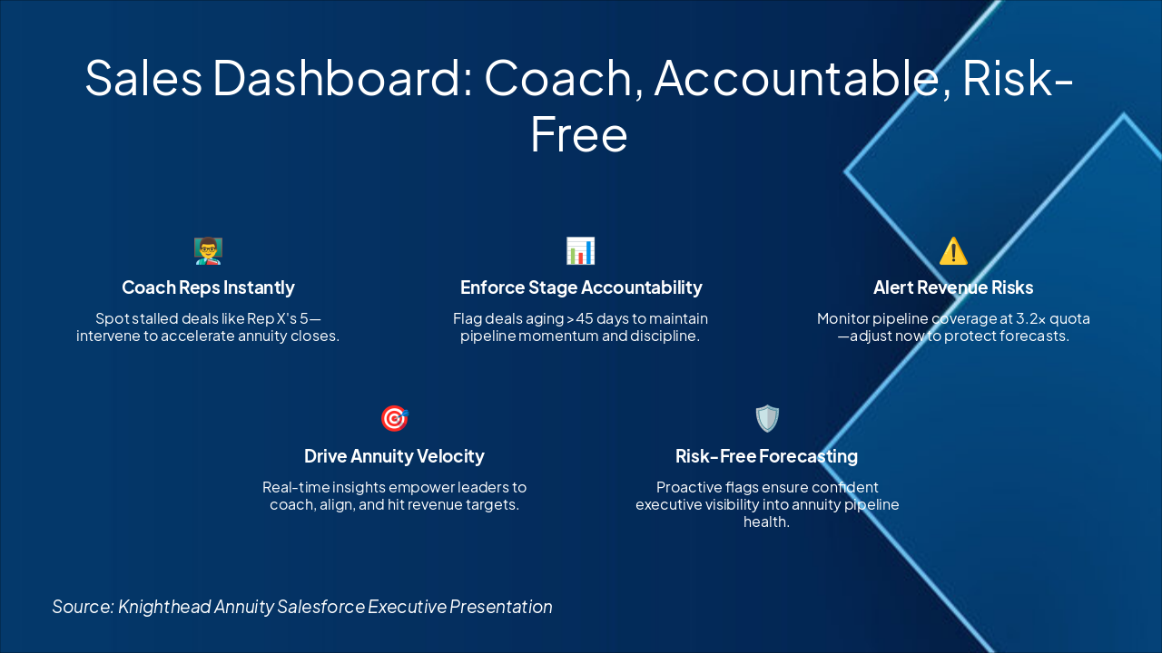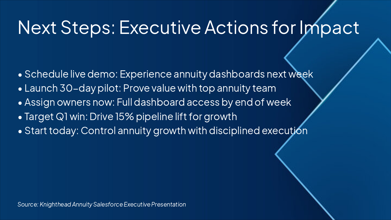 Executive actions for immediate sales impact and mastery Source: Knighthead Annuity Salesforce Executive Presentation
