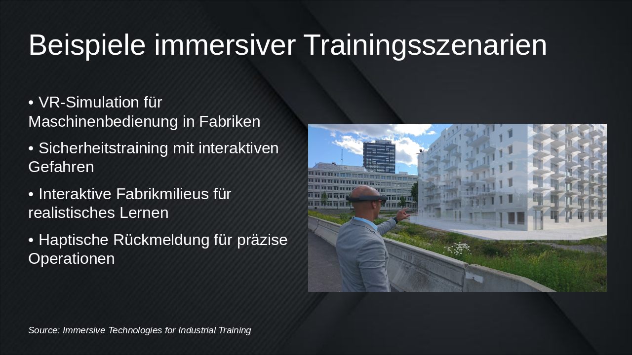 > Die immersive Technologie revolutioniert das industrielle Training in EU-Unternehmen, indem sie sicherere Methoden und höhere Effektivität bietet – eine transformative Entwicklung für die Branche.