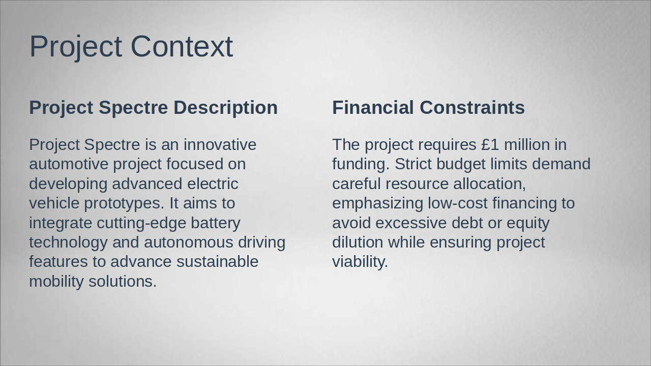 Source: Financial Strategy Analysis: Funding Project Spectre (£1 Million)