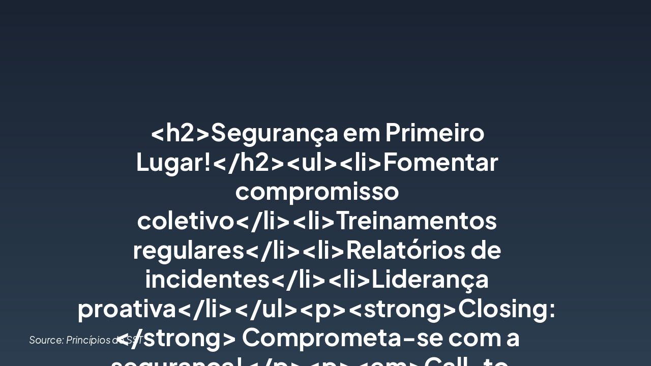 Apresentação dos princípios de SST e objetivos.