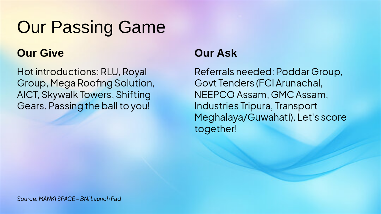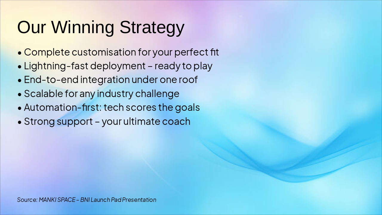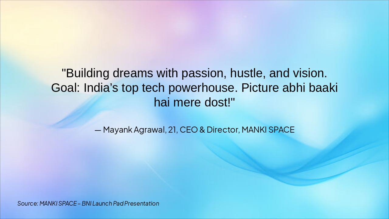 Source: MANKI SPACE – BNI Launch Pad Presentation