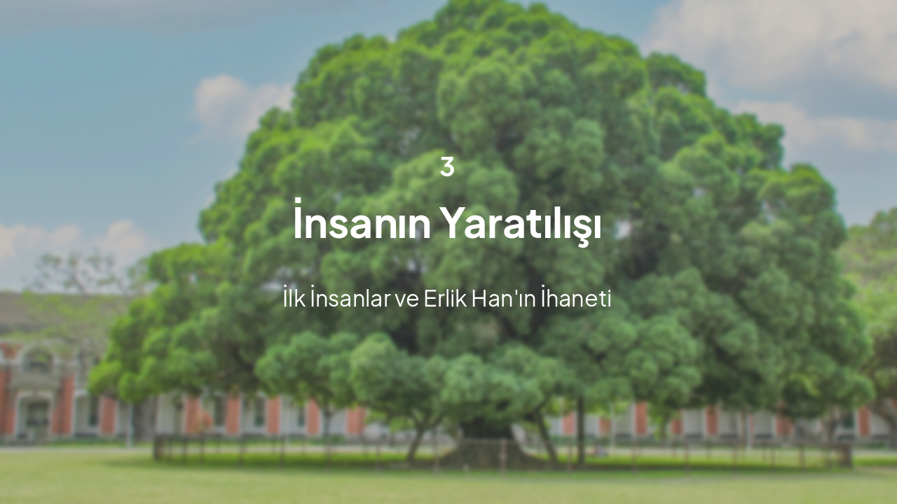 Altay Türk mitolojisinin temel taşı olan Yaratılış Destanı'nı ele alan bu sunum, evrenin kaostan doğuşunu, Tanrı Kayra Han ve Erlik Han'ın ikiliğini, insanın yaratılışını ve yeryüzünün şekillenmesini mitolojik bir perspektifle inceler.