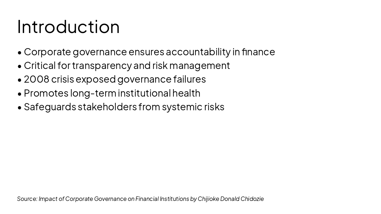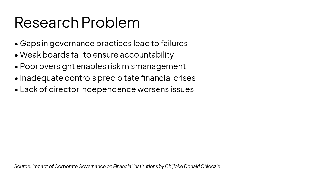 Source: Impact of Corporate Governance on Financial Institutions by Chijioke Donald Chidozie